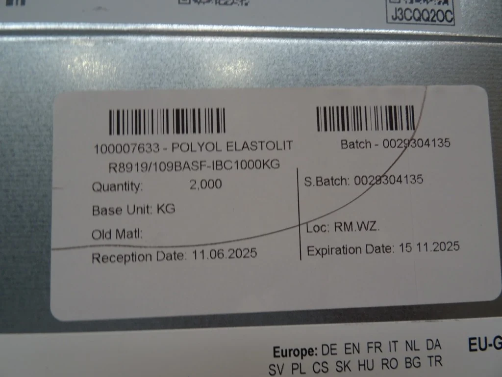 Type: R8919/109 polyvol component, netto: 1000kg, vervaldatum: 11/2025<br /> locatie: stock