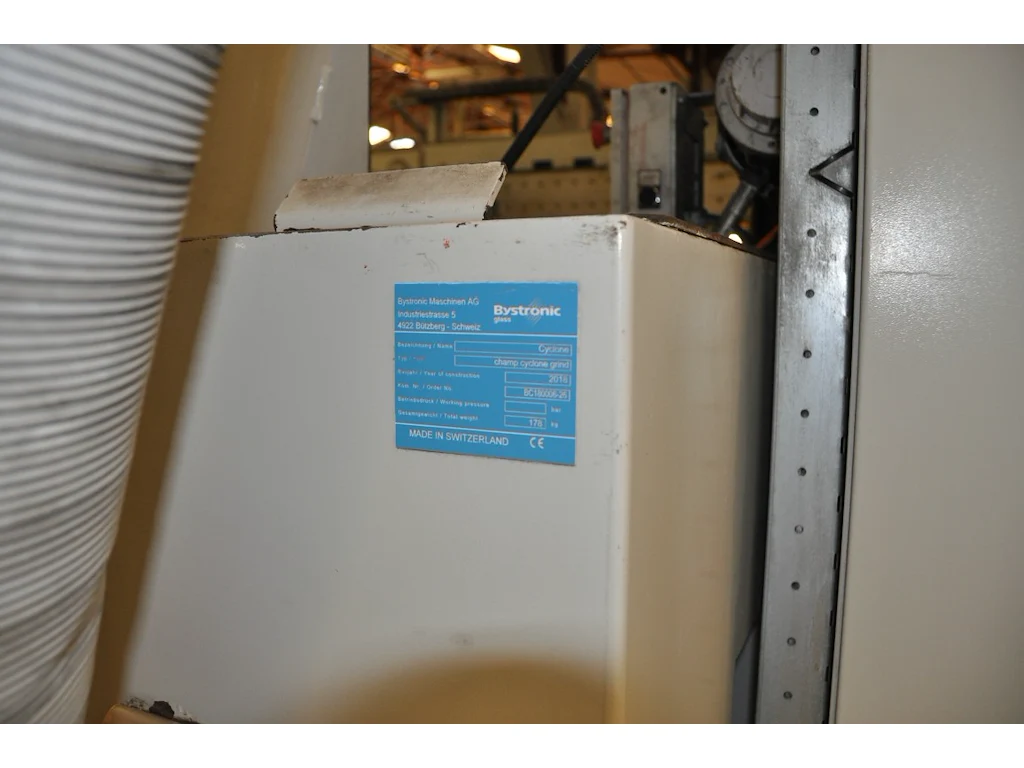 Bystronic Maschinen AG<br /> glass cutting machine<br /> champ cut TWIN<br /> yoc: 2018<br /> Order Nr: BC180006-41<br /> working pressure: 6 bar<br /> total Weight: 2500 kg
