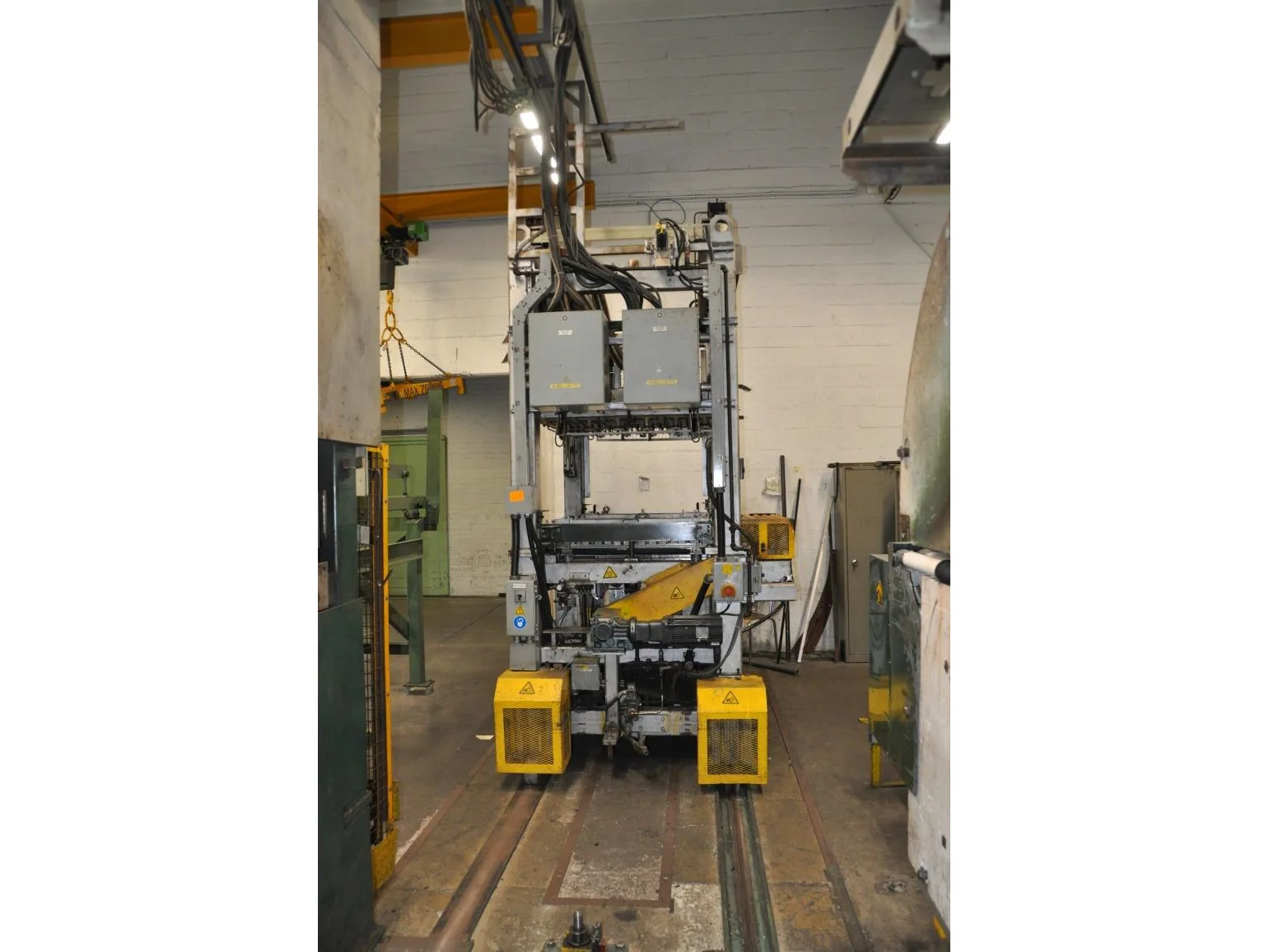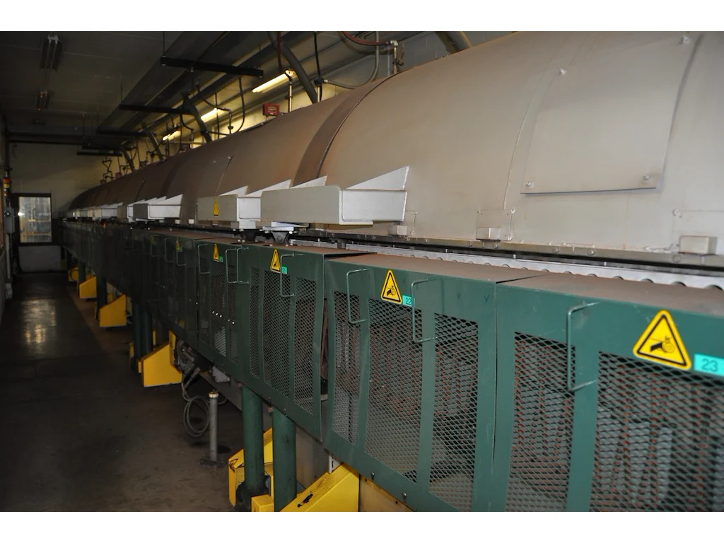 Furnace & two press station, 2 quality control stations, conveyors, 3 glass buffers<br /> load conveyor, furnace conveyors, on-line stations, cooler conveyors, off press station, centring, pressing, mold, bender conveyor, press ring.<br /> System type: EPB, SN 0282-00, yoc 2004, system voltage 400/230v-50 Hz<br /> moving mass: 2150 LBS. VERT. 250 LBS. HORIZ