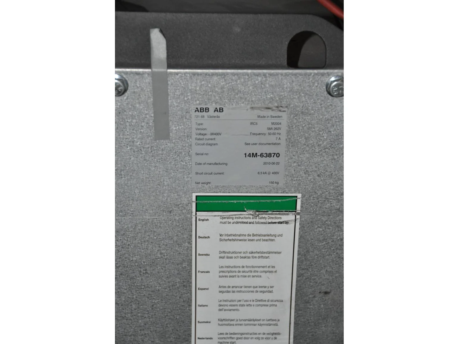 Plastic adapaters fixation; porshe prject; controller Delta type DAT300<br /> Robot Type IRC5 M2004, Net weight 150 kg, yoc 2010