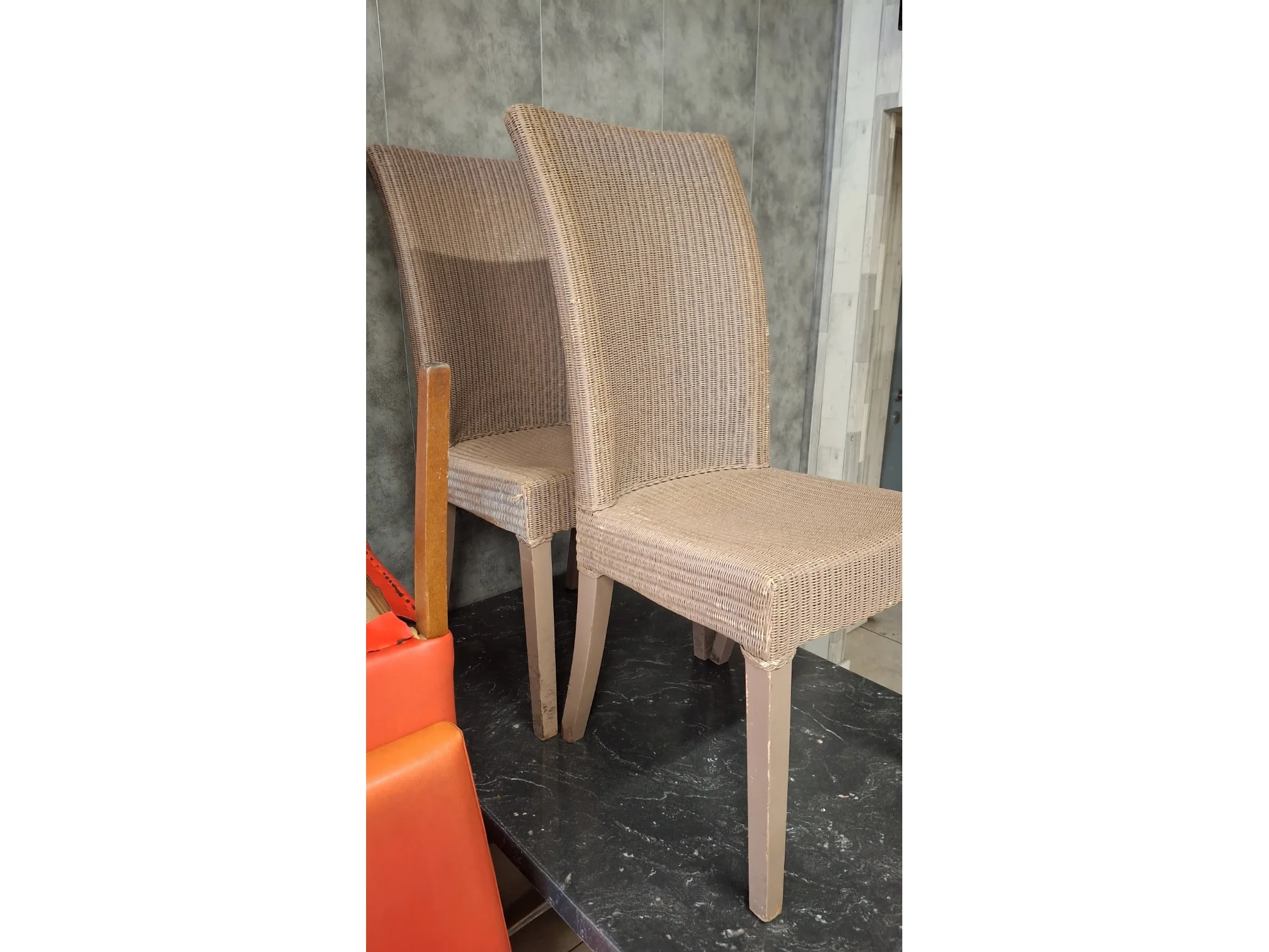 : <br /> 12 stoelen rode kleur<br /> 1 vintage stoel<br /> 2 rieten stoelen