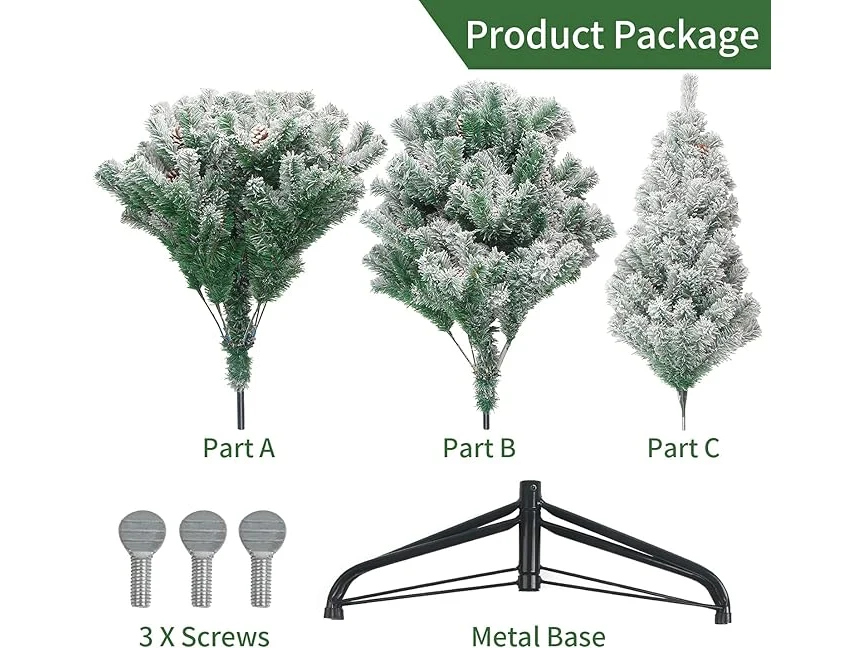 Ongeopend, in seal, licht beschadigde verpakking, JOFONY Gevlokte kerstboom, groen, kunstkerstboom, dichte takken dennenboom voor kerstdecoratie, tafeldecoratie, etalage, B0CYBZQN4L