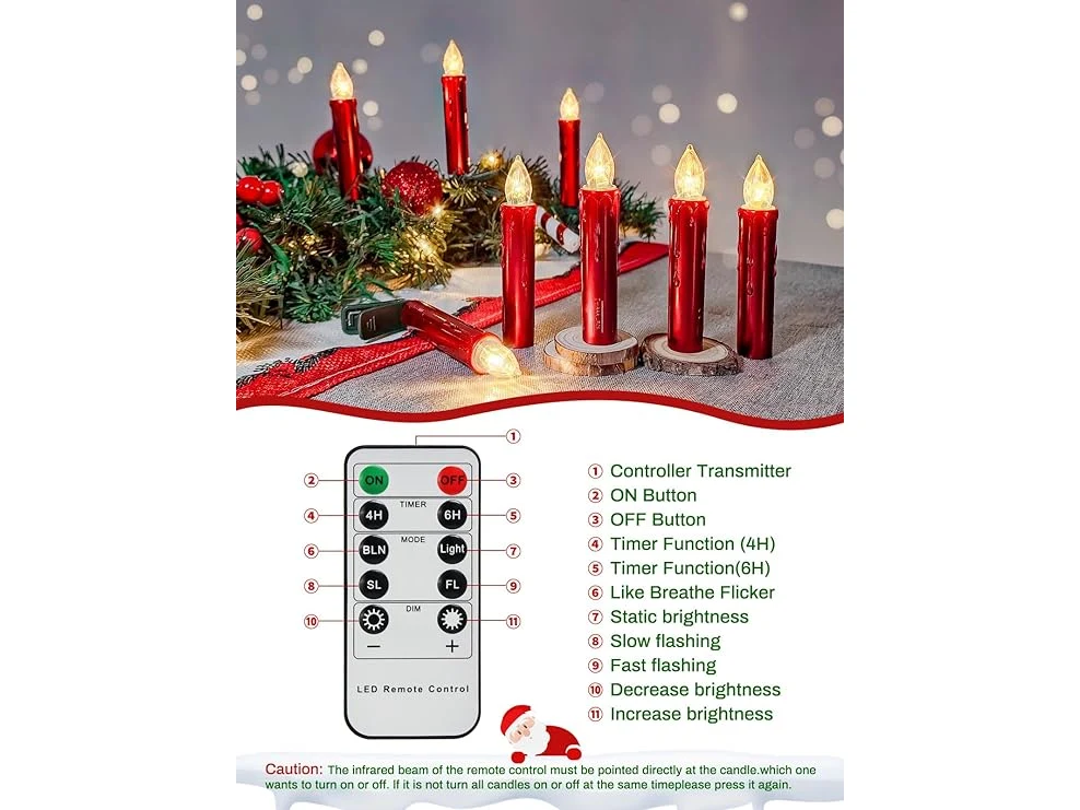 Ongeopend, ok, exclusief batterijen, 2 x 20 stuks ledkerstboomkaarsen, met afstandsbediening, timer, kerstkaarsen, dimbare kerstkaarsen, draadloos, elektrische kaarsen, staafkaarsen, vlamloze kerstkaarsen, rood, B0D12PZQ4G