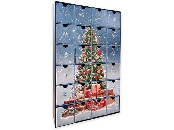 Ongeopend, in seal, Adventskalender (zelf te vullen) met 24 ladekastjes, DIY kerstkalender, knutselset, cijfers en kerstboom, B0B8FWKDY2