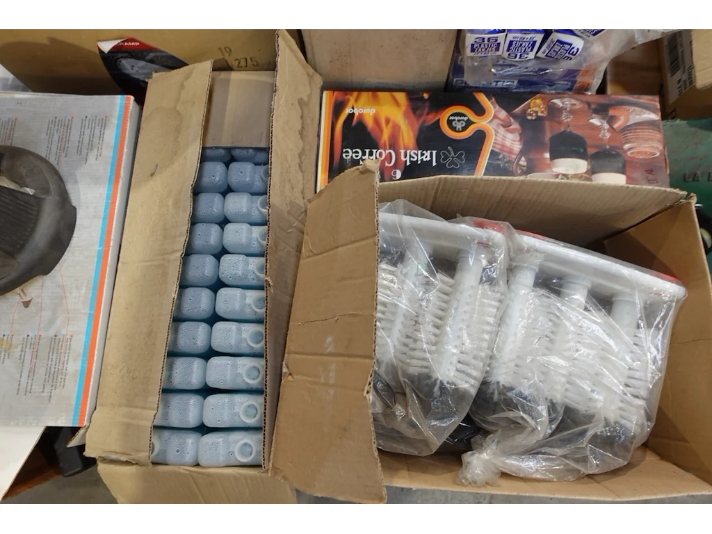 Oa: waterkraan, voetpomp, vershoudfolie, kettingzaagolie,..<br /> Locatie: B16