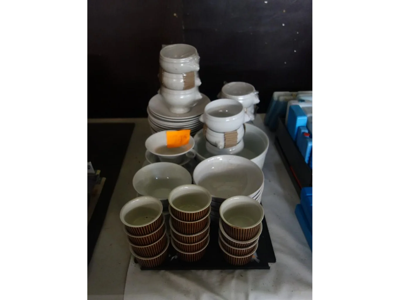 Set met soepkommen, dessertborden, dessertpotjes en grote kom