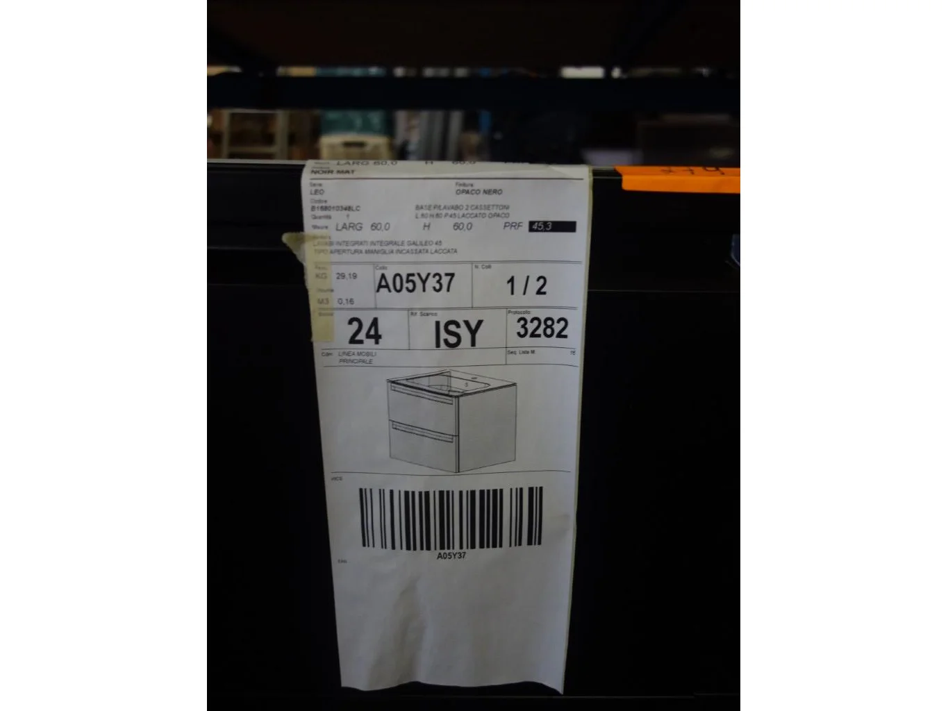 Onderkast (zwart) met 2 laden 60 x 60 met uitsparing voor afvoer