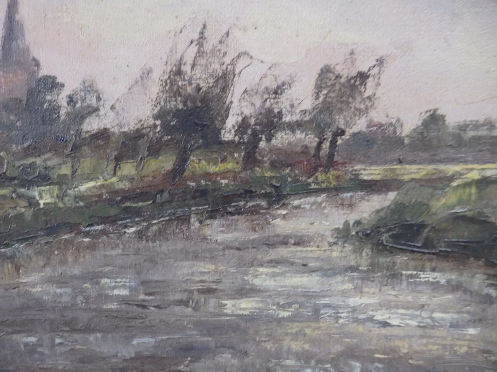 Schilderij leiezicht 60cm x 60cm gesigneerd j.s.