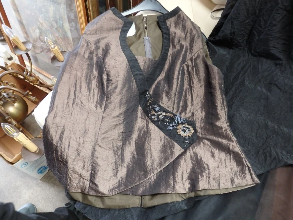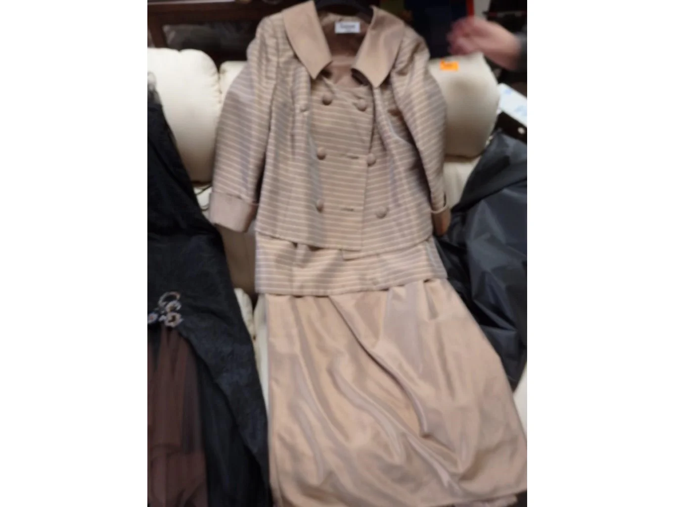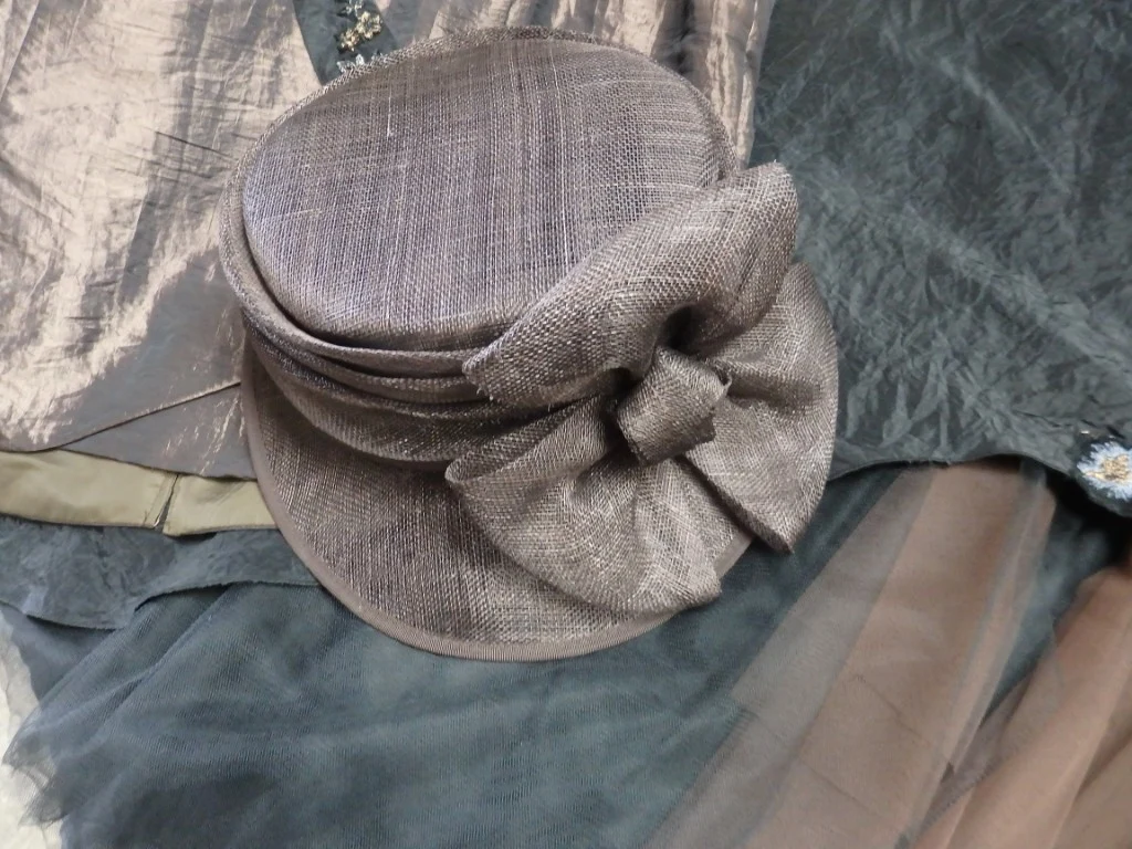 2 feestensembles (rok + bloes) + 1 hoed -beige en zwart