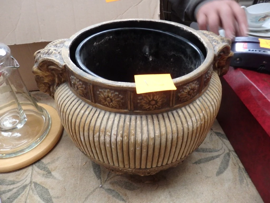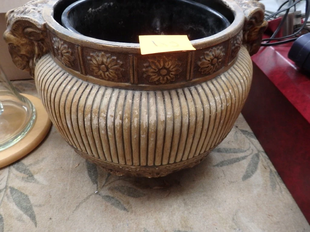 Bloempot met ramskoppen