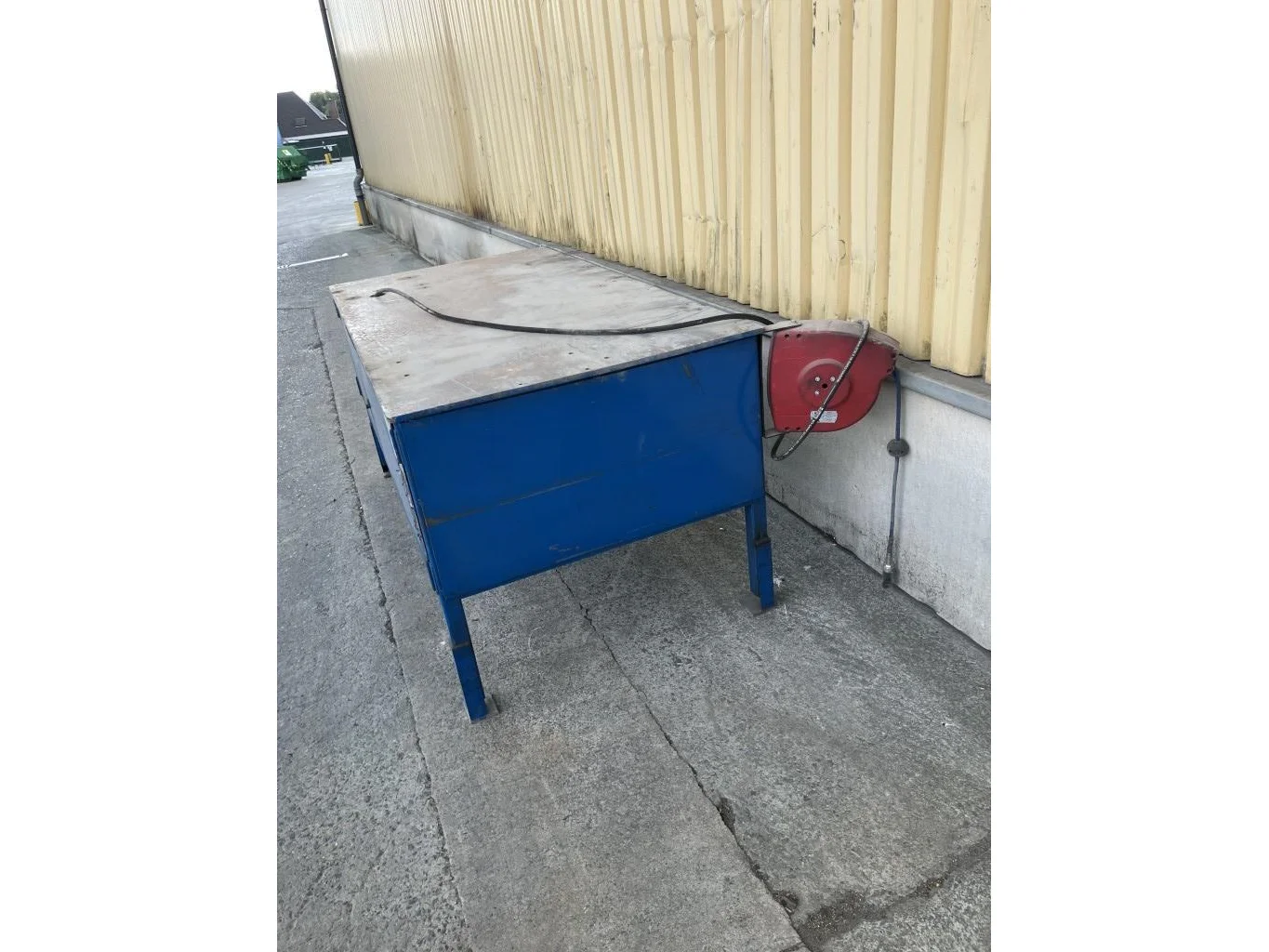 Afmetingen (LxBxH): 2150x1100x930mm - Stalen werkblad - Conditie: Gebruikt<br /> Gebruikt
