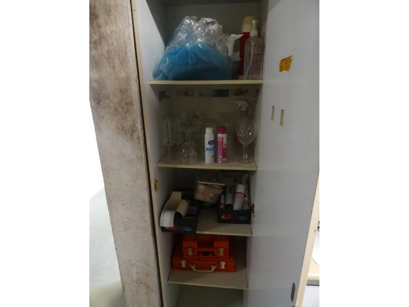 3x Locker, diverse kasten, schoonmaakgereedschap,waterdispenser, 2x pvc pallet, tafeltje, ...<br /> locatie: Opslagruimte 1