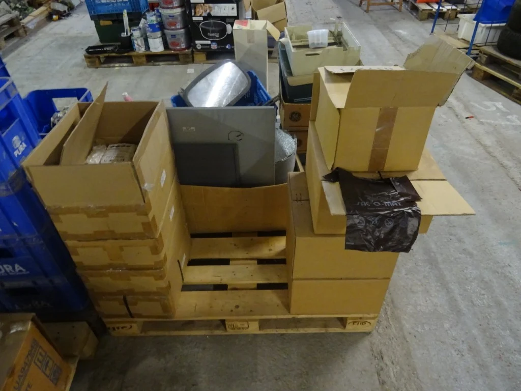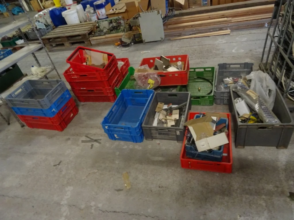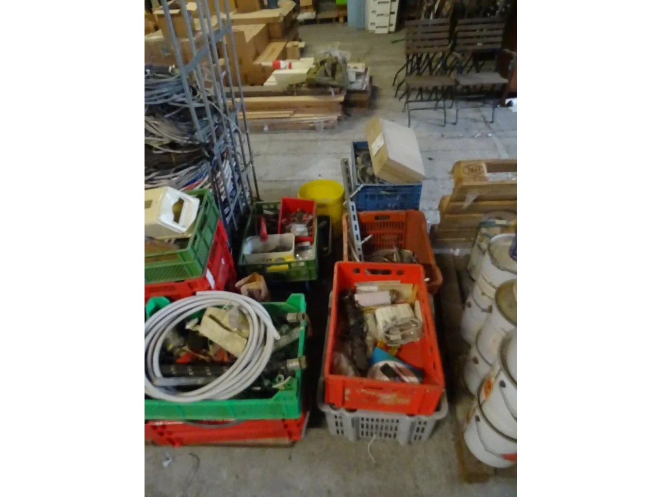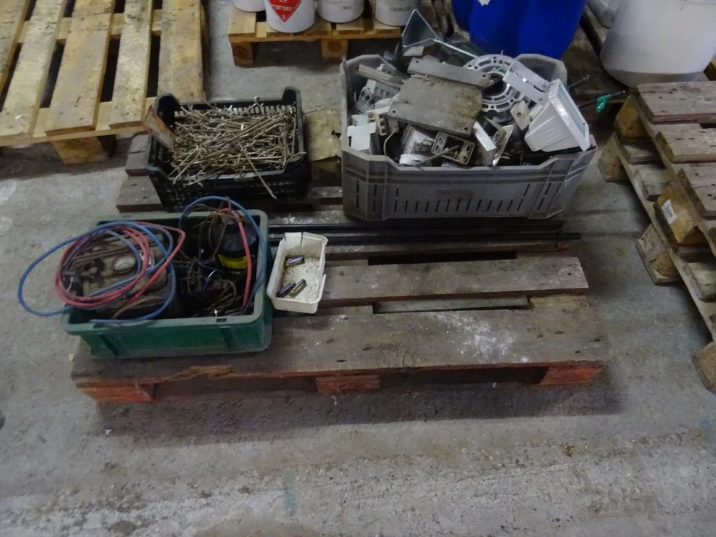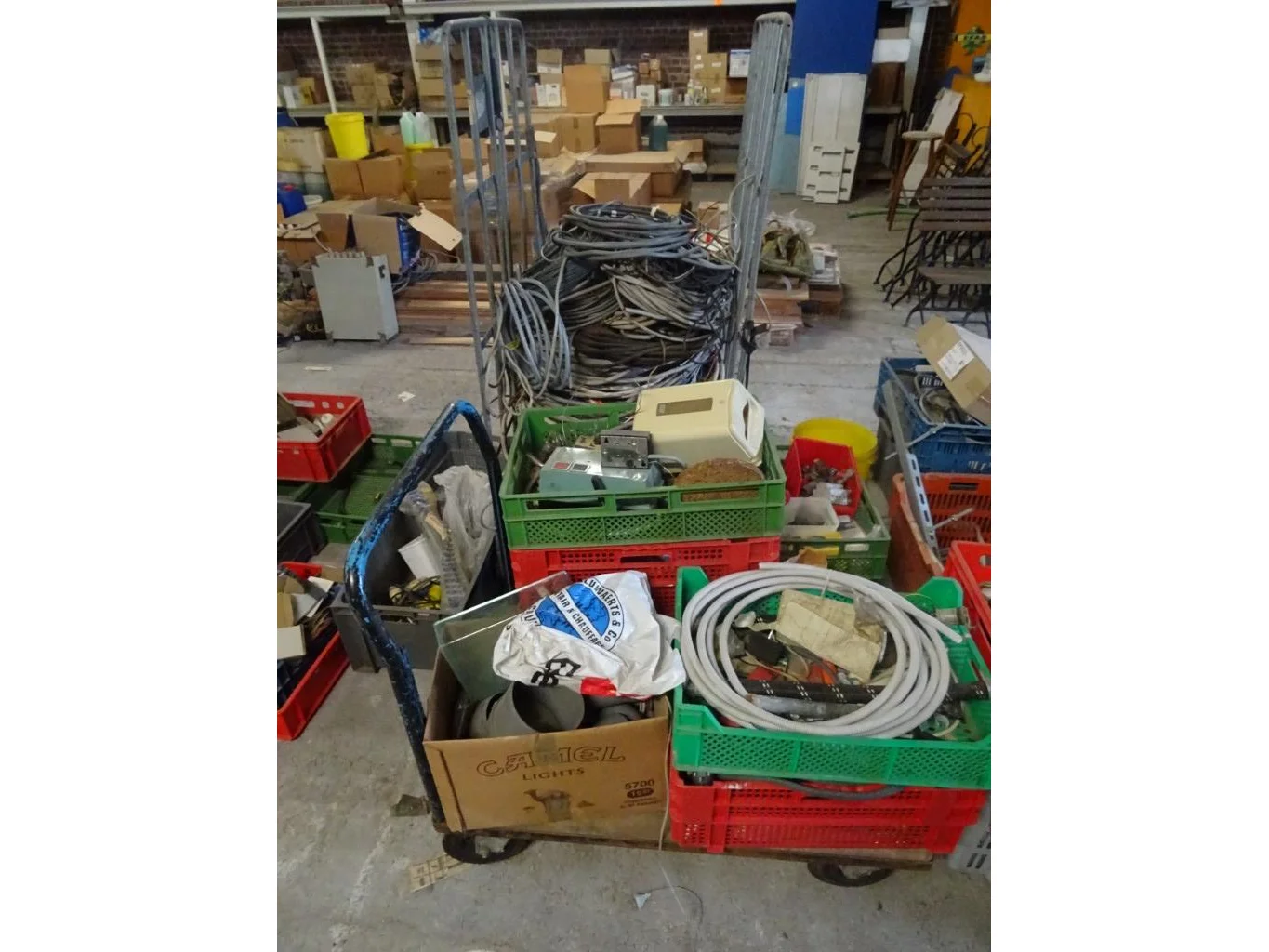 Oa. kar met kabels, kunstof bakken, producten, oude metalen, ...<br /> locatie: Zolder