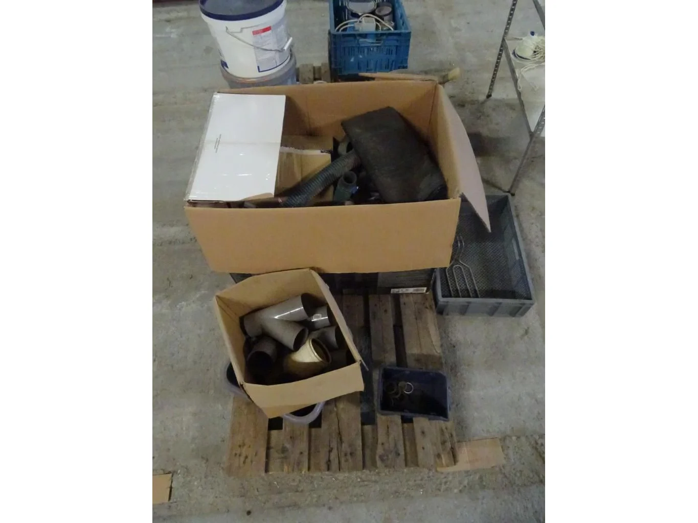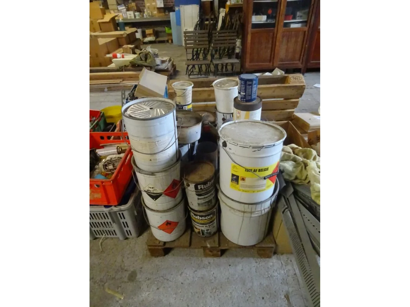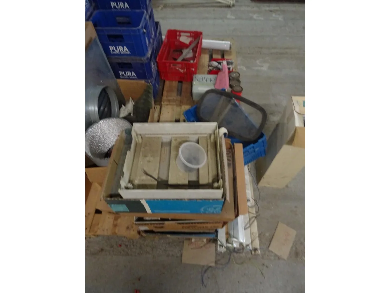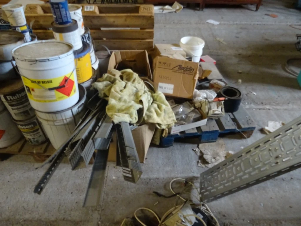 Oa. kar met kabels, kunstof bakken, producten, oude metalen, ...<br /> locatie: Zolder