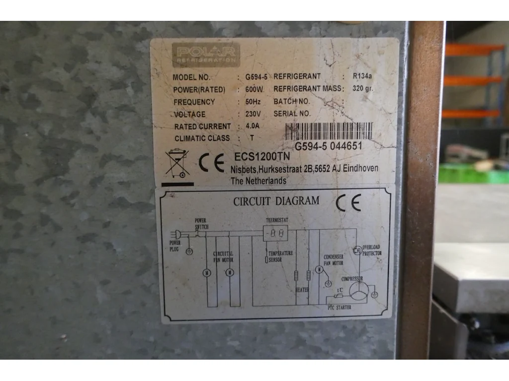 RVS 2-deurs verrijdbare koelkast 1200L<br /> *merk : POLAR<br /> *model : G 594-5