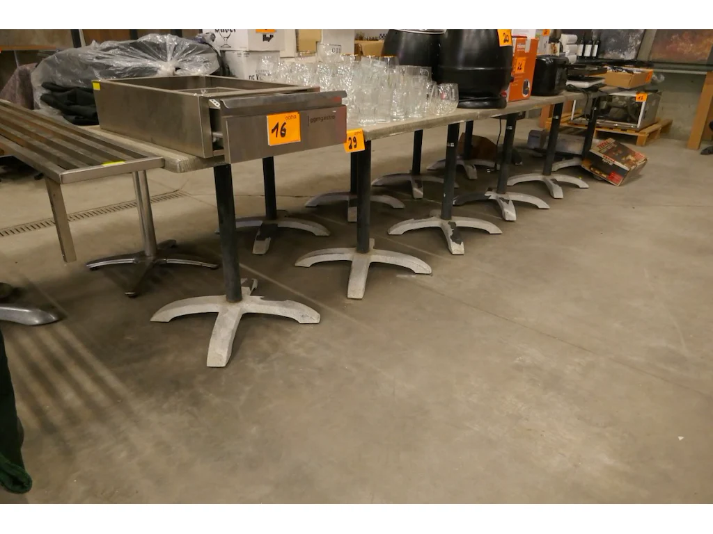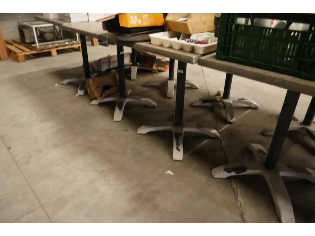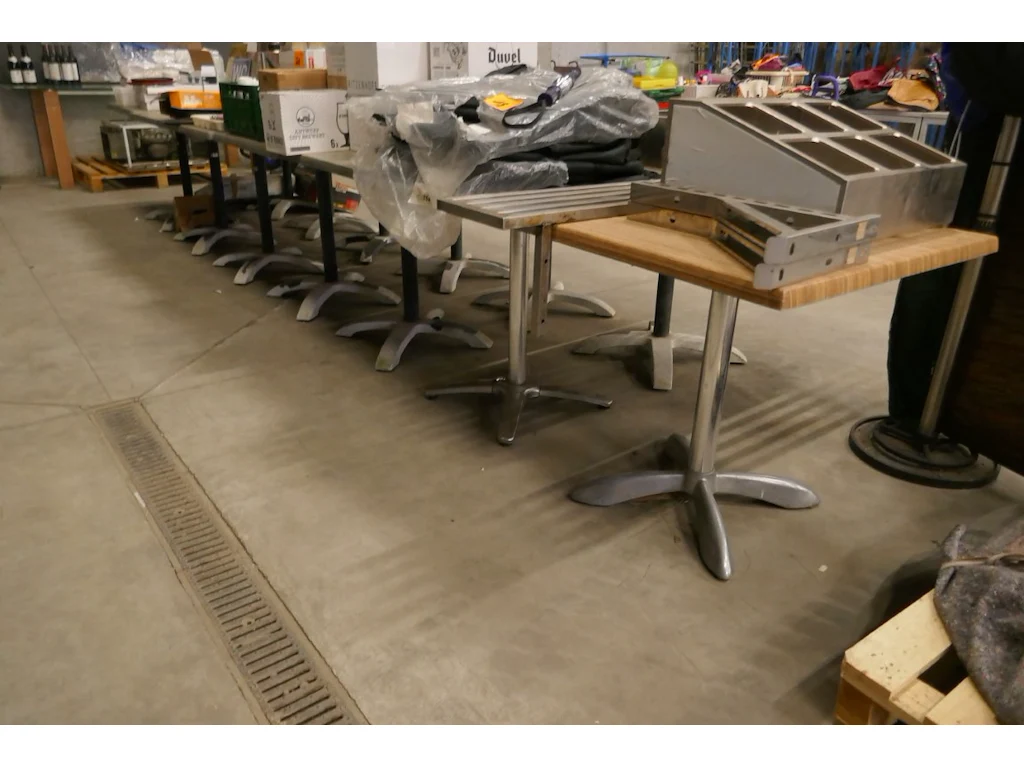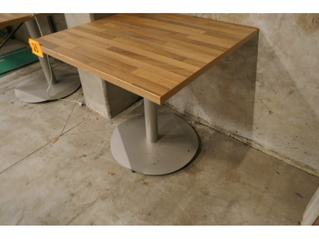 - zie uitvoeringen - op metalen voet en houten bovenblad - 14 stuks <br /> *afmeting : 70x70 cm