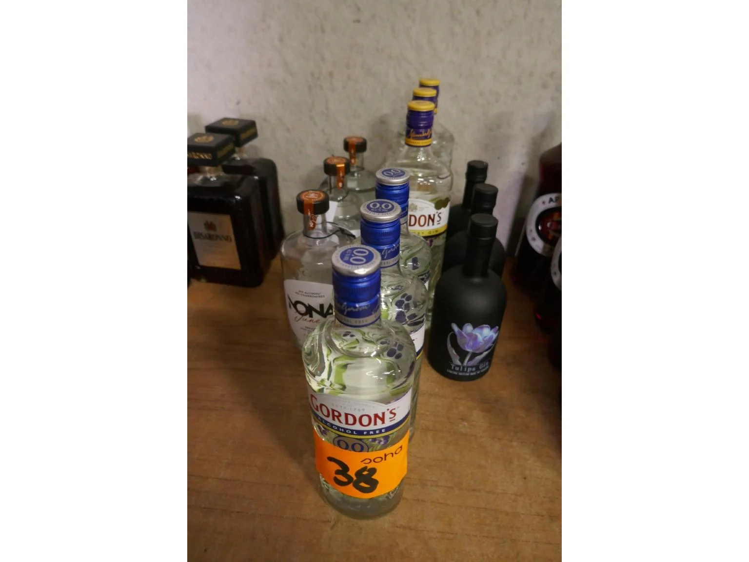 Reeks flessen Gin met en zonder alcohol : Gordon's alcoholvrij - Gordon's Gin - Tulipa Gin - Nona alcoholvrij<br /> *12 flessen
