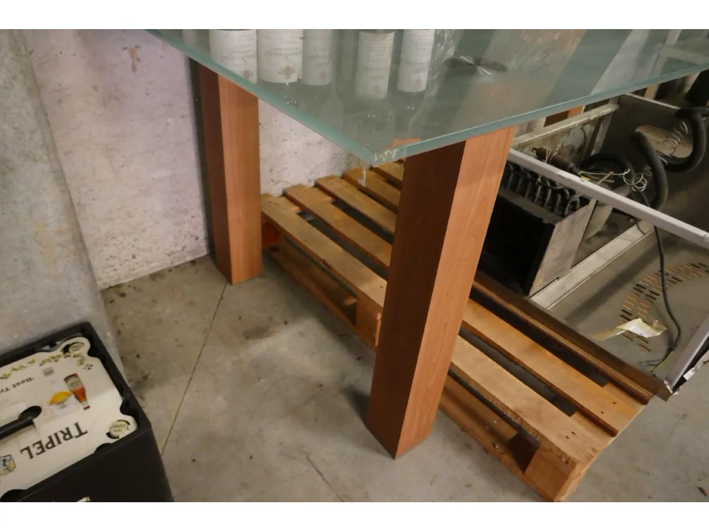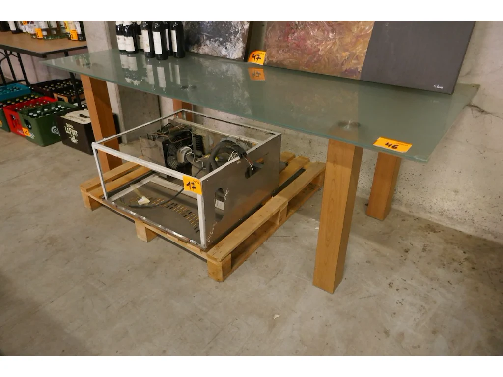 Eetkamertafel met 4 houten poten en glazen bovenblad - modern<br /> *afmeting : L220xB101 cm