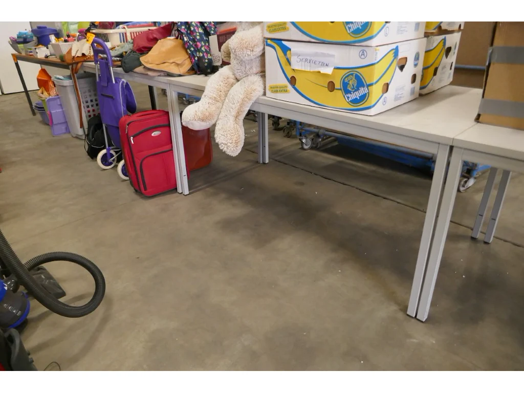 Metalen tafels lichtgrijze kleur met houten bovenblad ( bureelruimtes ) - 5 stuks<br /> *afmeting : L160xB80 cm