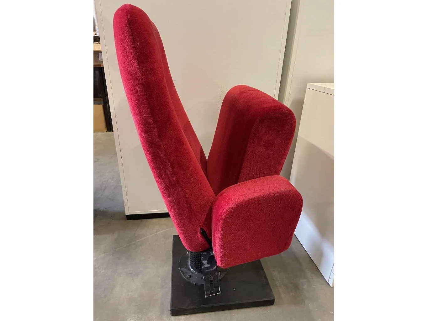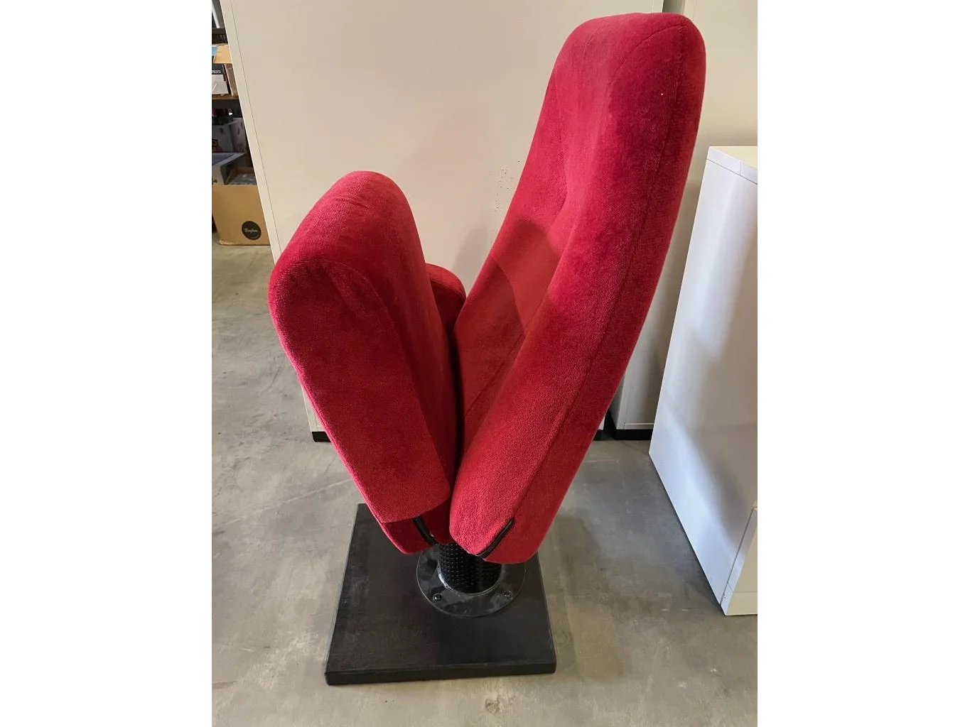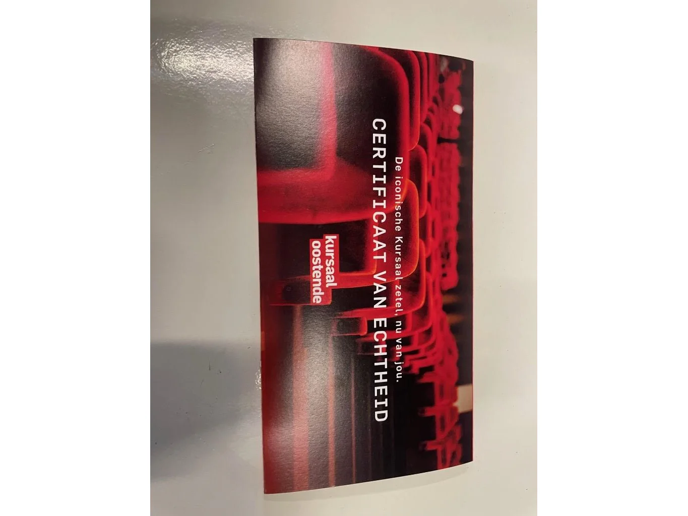 Collector item : Iconische rode opklapbare stoel uit het Kursaal Oostende, met bijhorende certificaat ( stoel 1205 )<br /> <br /> OPMERKING : DE OPBRENGST VAN DE VERKOOP VAN DEZE STOEL GAAT INTEGRAAL NAAR HET GOEDE DOEL = "Het Ventiel" - een buddyproject voor een zinvolle dagbesteding voor mensen met jongdementie
