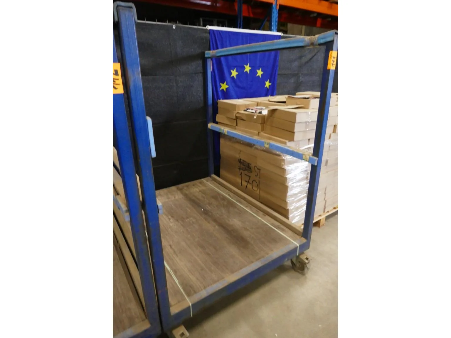 Grote plateauwagen met laadstuk en zwenkwielen