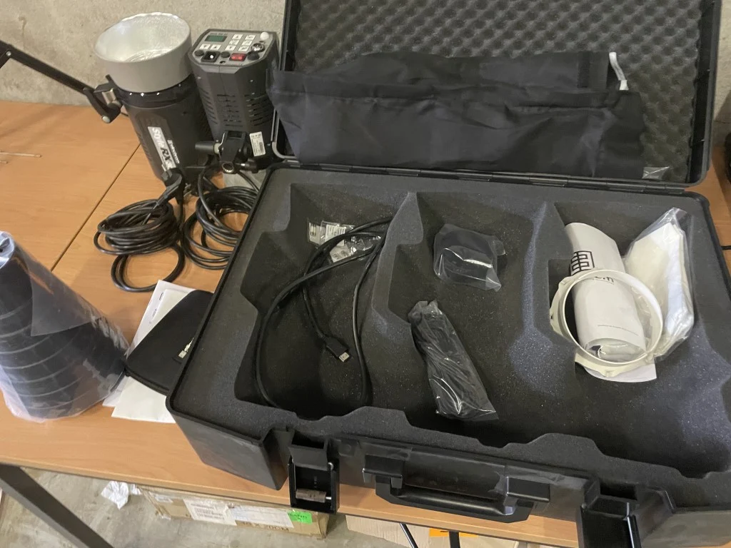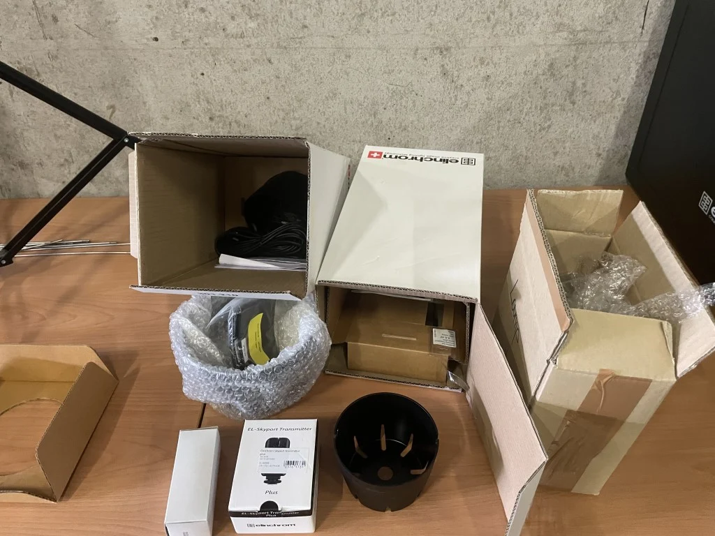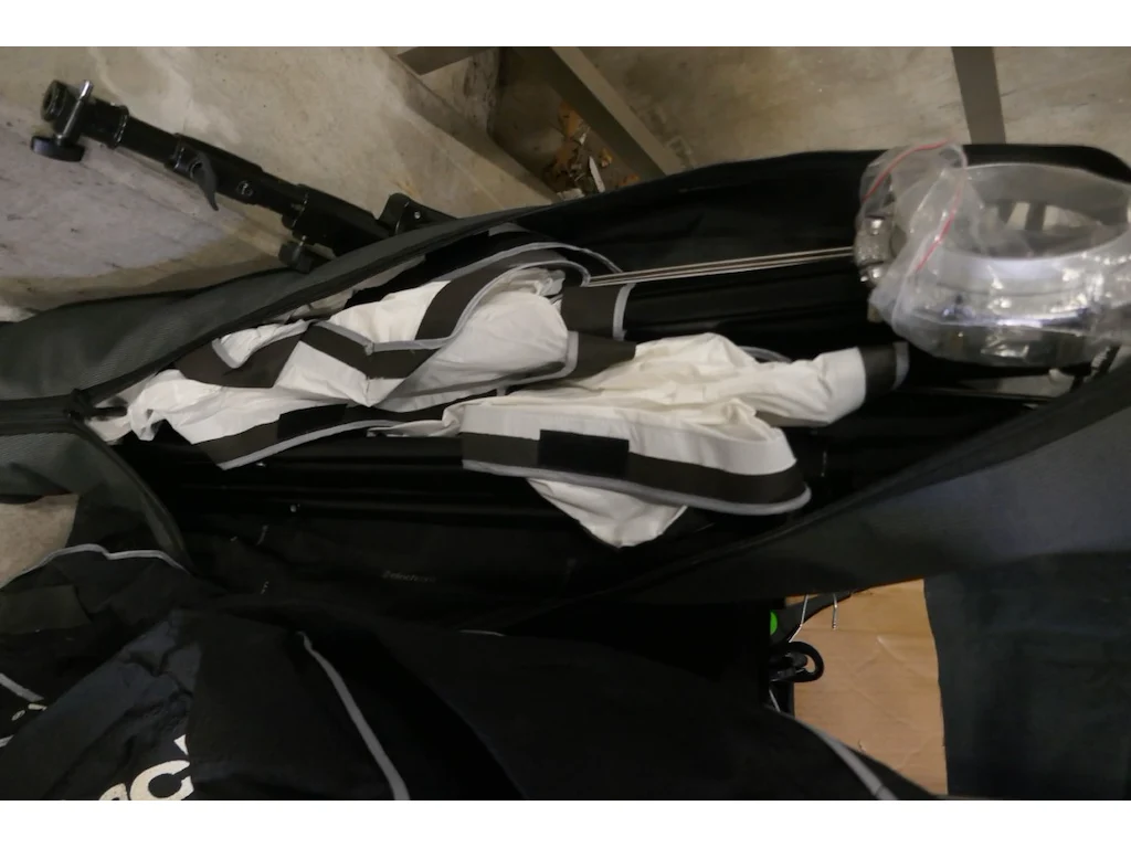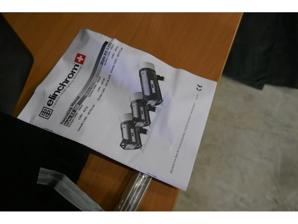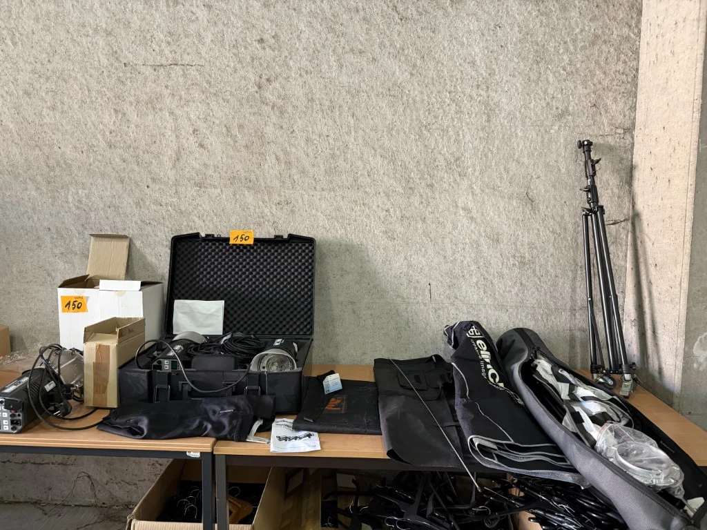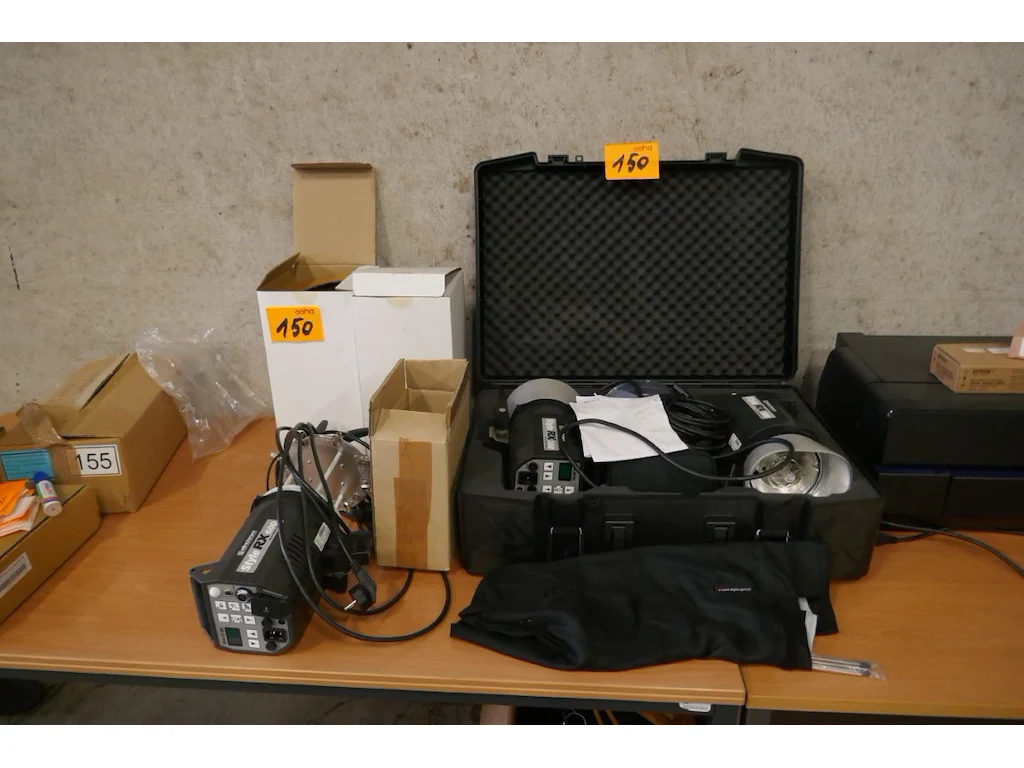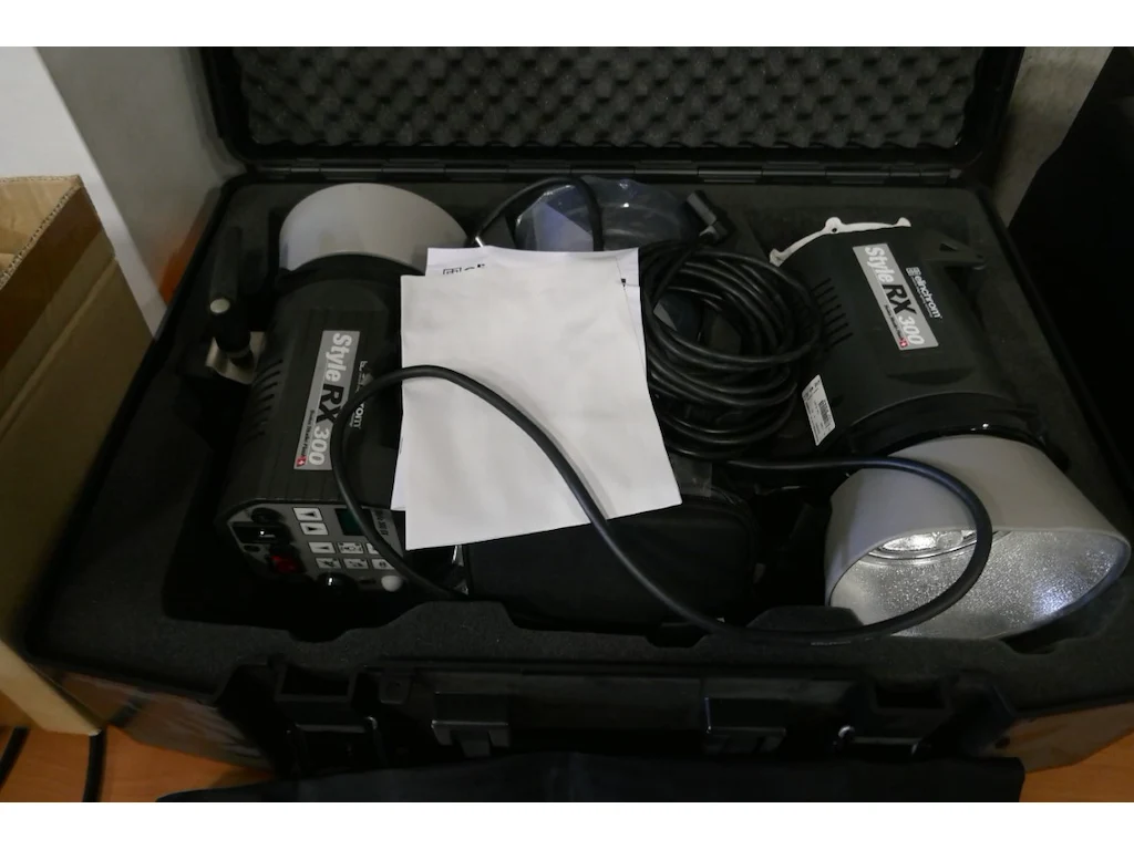 Set van 3 studioflitsers met bijhorende onderdelen<br /> *merk : ELINCHROM<br /> *model : style RX300 + RX600<br /> *met koffer <br /> +<br /> Flits paraplu ,3 statieven (oa 1 verrijdbaar) <br /> *ELINCHROM<br /> *met bijhorende draagzakken