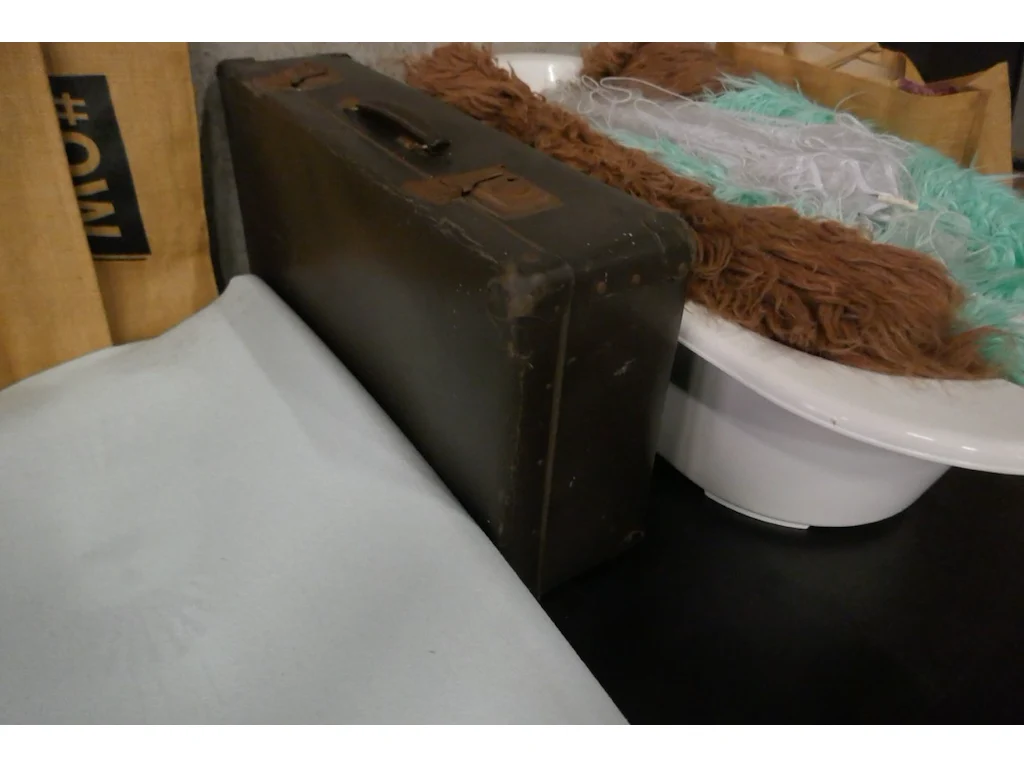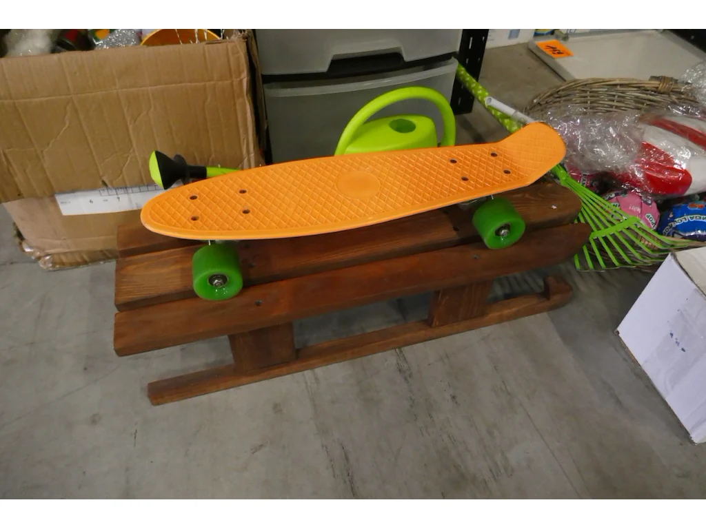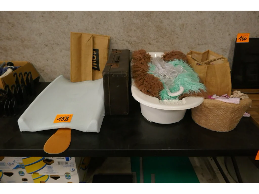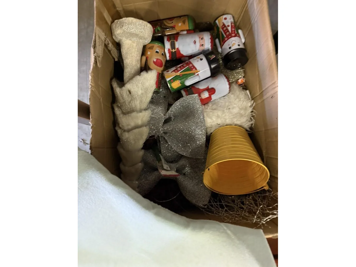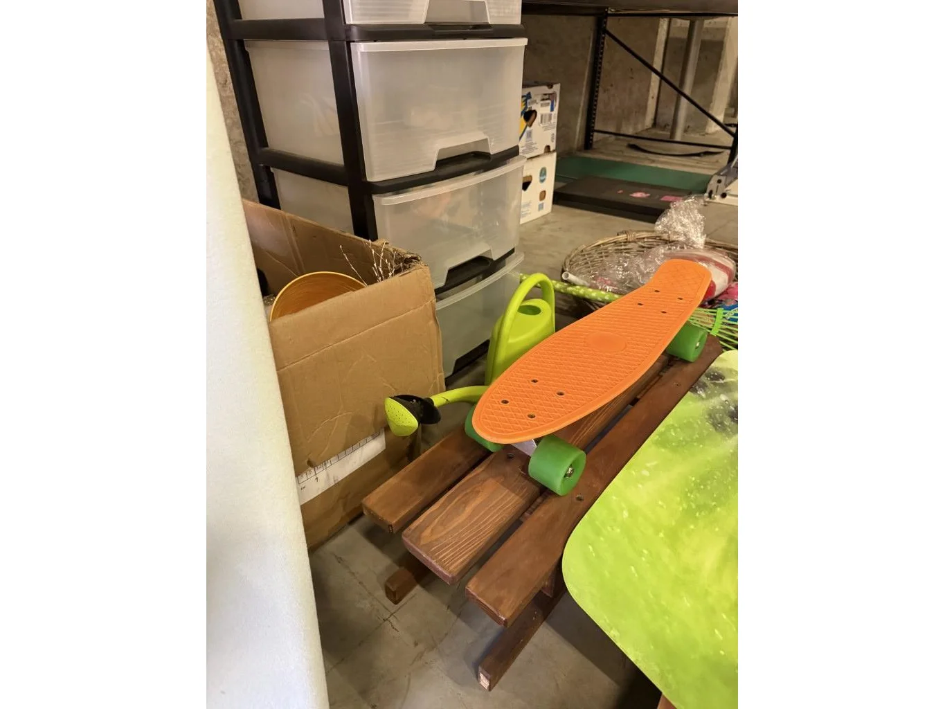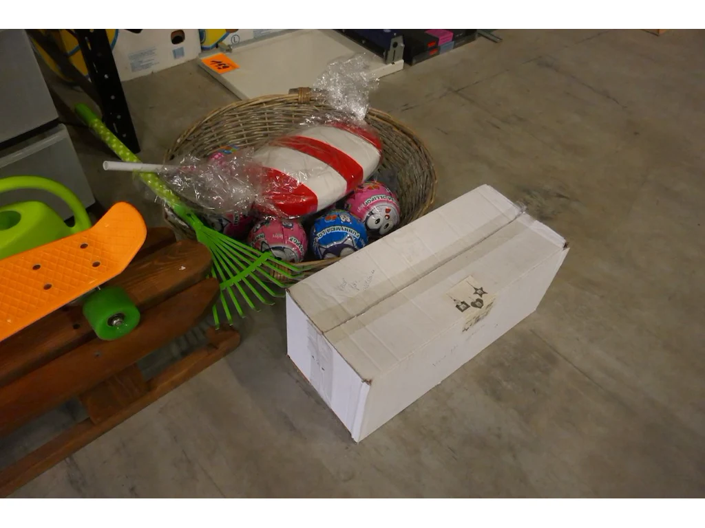 Plastieken Opbergbox 4 laden - el.verwarmingstoestel CALOR - skatebord - slede - kerstartikelen - gieter - badje - vintage valies - textief (sjaals, mutsen) - parasol, … enz….