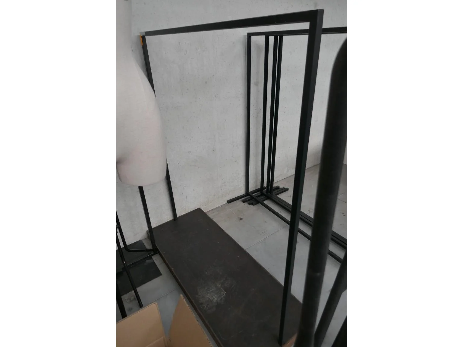 Zwartmetalen kledingrekken kapstok model - 4 stuks <br /> Zwartmetalen kledijrek met legbord