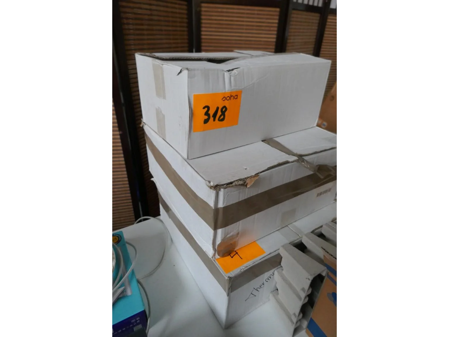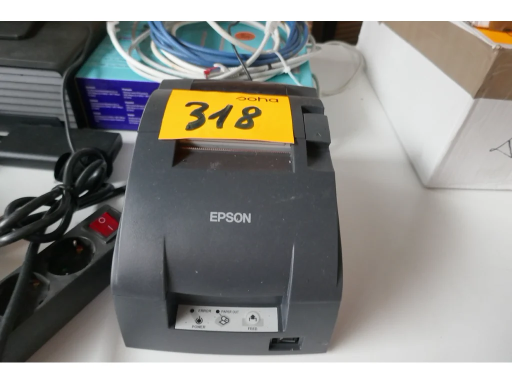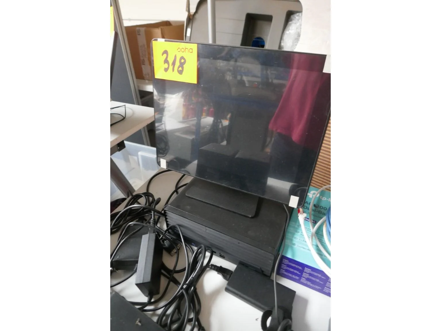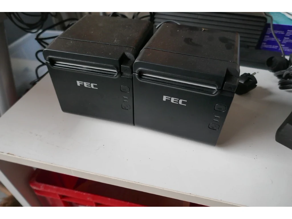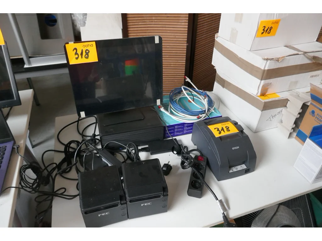 Monitor met pc kassasysteem<br /> *merk : niet zichtbaar<br /> 3 ticketprinters - merk, FEC en EPSON<br /> Wifi rooter - merk, TP-LINK<br /> Dozen kassarolletjes