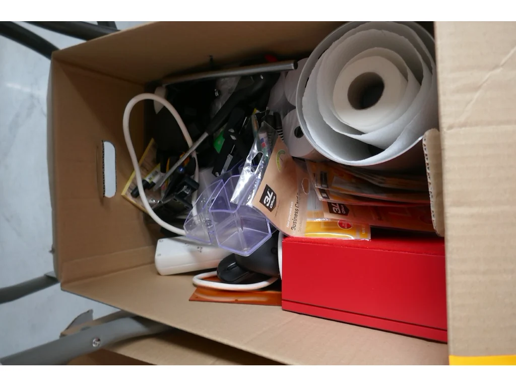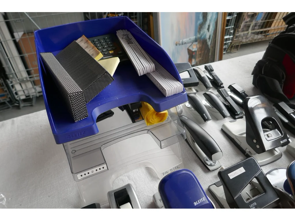 Partij diverse perforators - merk, LEITZ<br /> plakbandafrollers - nietjesmachines - enz…( inhoud dozen )