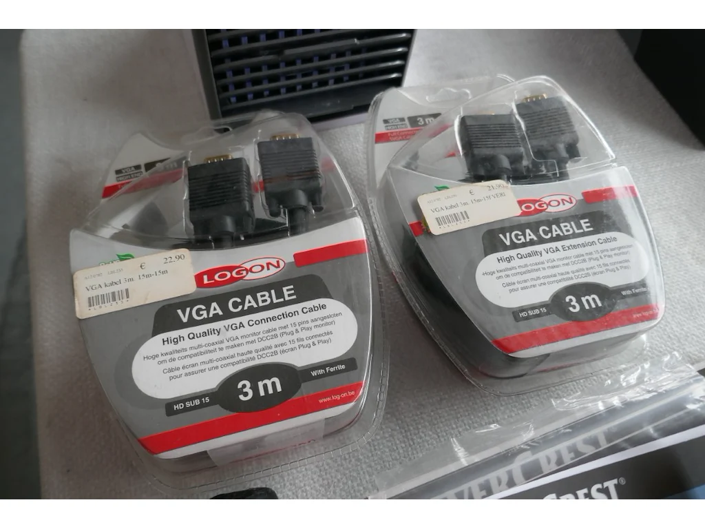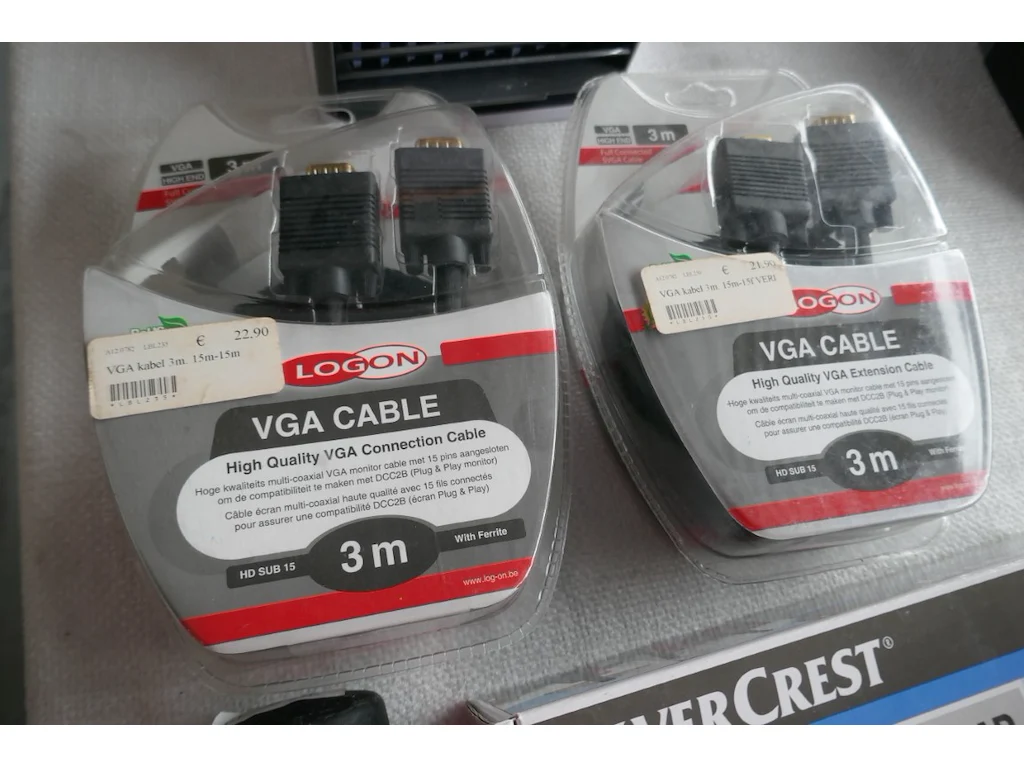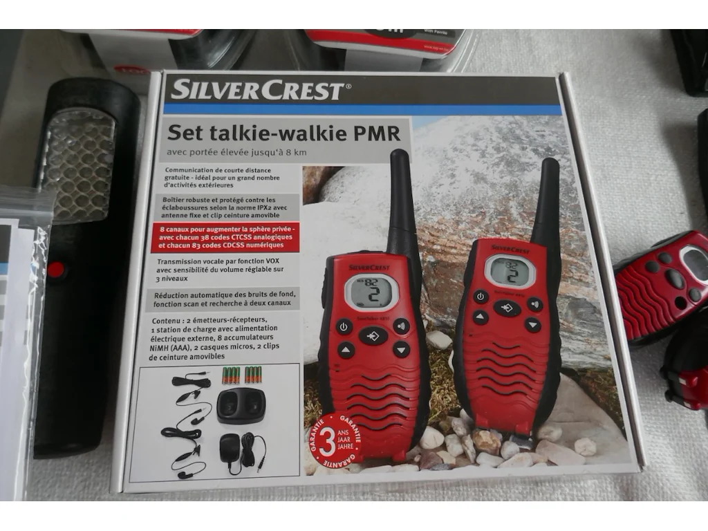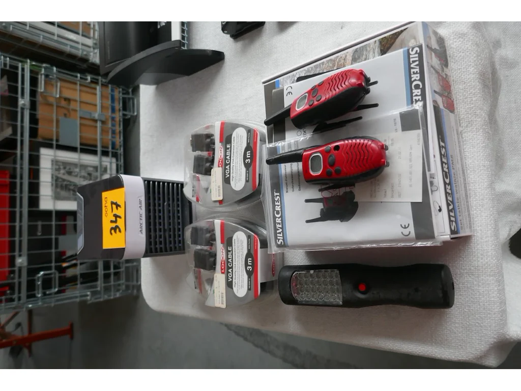 Talkie walkies - merk, SILVERCREST<br /> Werflamp - luctverfrisser<br /> VGA connectie kabels - merk, LOGON