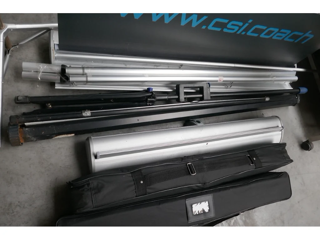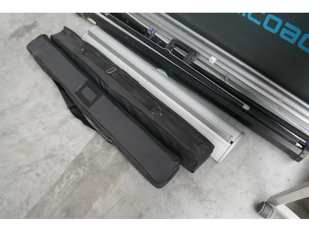 2 Projecteerschermen <br /> 3 banners met reclameafdruk en draagzak