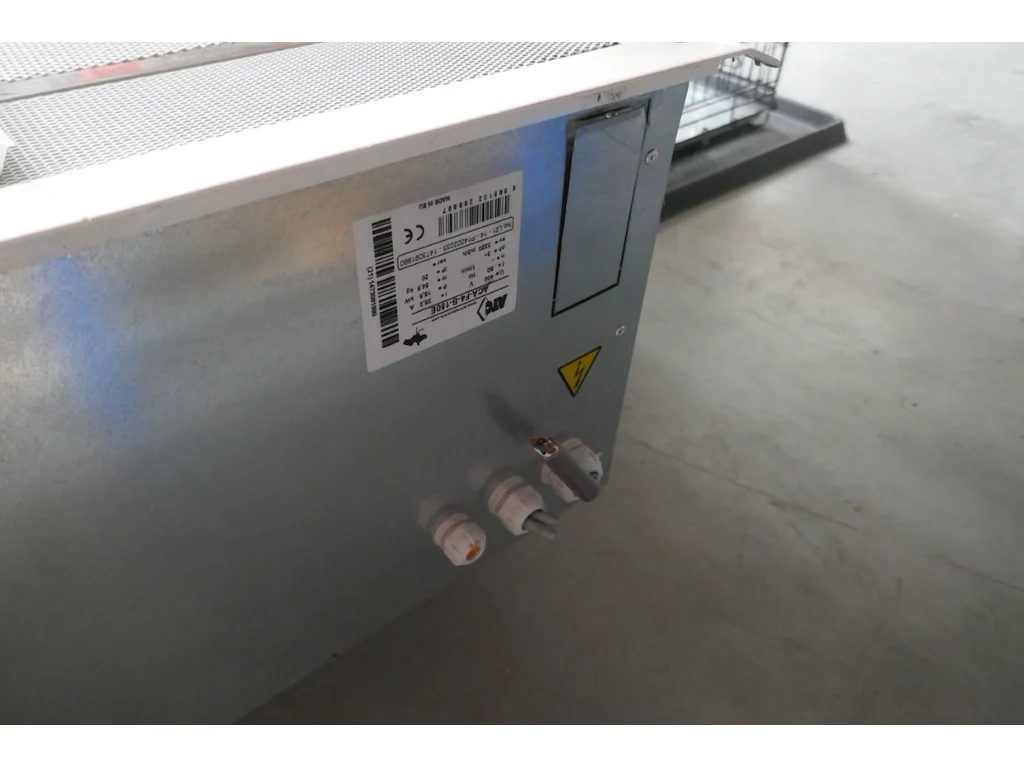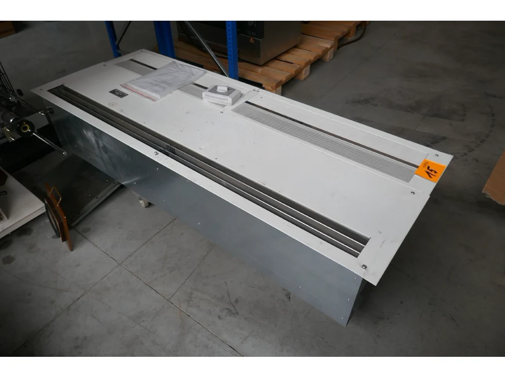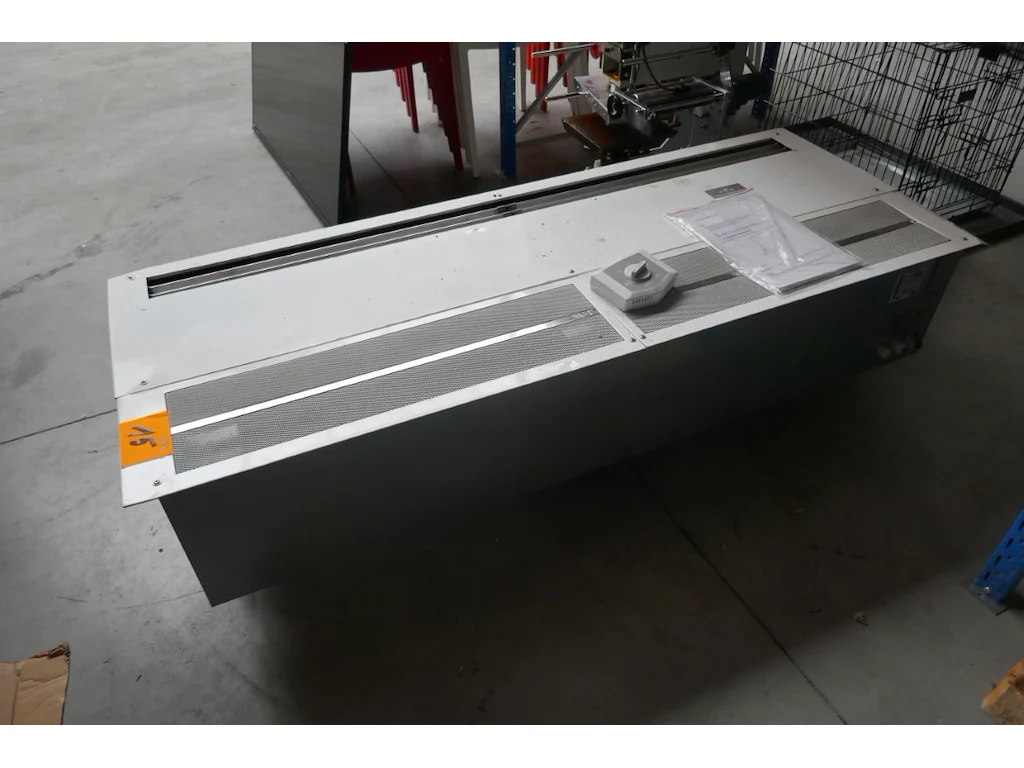 Finesse Inbouwluchtgordijn<br /> *merk : ATC<br /> *model : aca-f4-b-150e<br /> = met elektrische verwarmingsspiraal voor hoogtes tot 5 meter. Het rooster is gemaakt van verstelbare lamellen. Het aanzuigrooster is gemaakt van strekmetaal, dat tevens als filter fungeert.<br /> (Opgelet : lichte beschadiging hoeken)