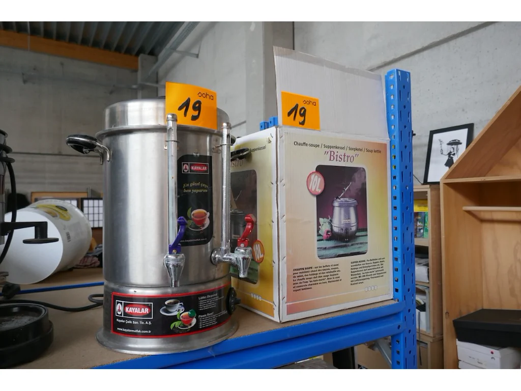 Elektrische soepketel <br /> *merk : BISTRO<br /> Thee machine<br /> *merk : KAYALAR<br /> professionele pannekoekbakplaat<br /> *merk : DIAMOND