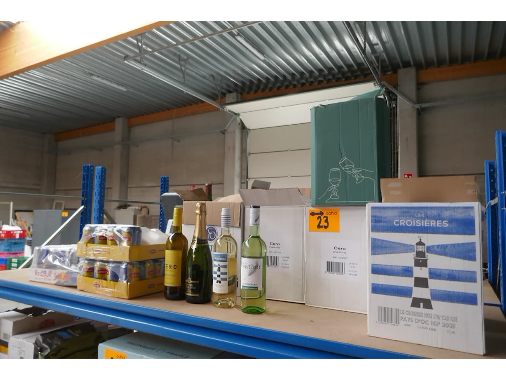 Assortiment witte en schuimwijnen ( ook inhoud dozen ) <br /> Frisdranken : Lipton icetea - sprite - red bull<br /> Flessen likeuren - ongeveer 14 stuks