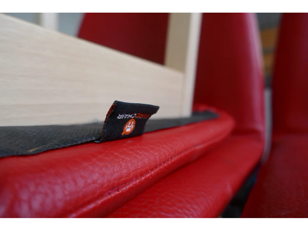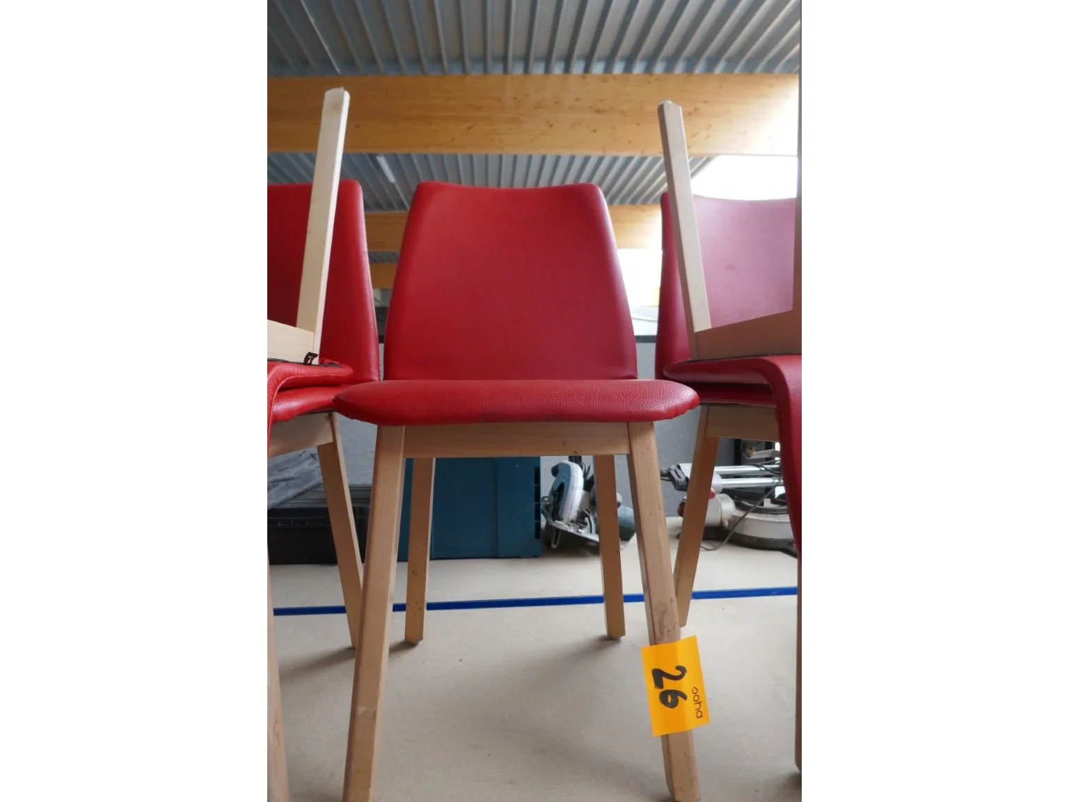 5 Houten stoelen met kunststoflederen zitting rode kleur <br /> *merk : EUROCHAIR