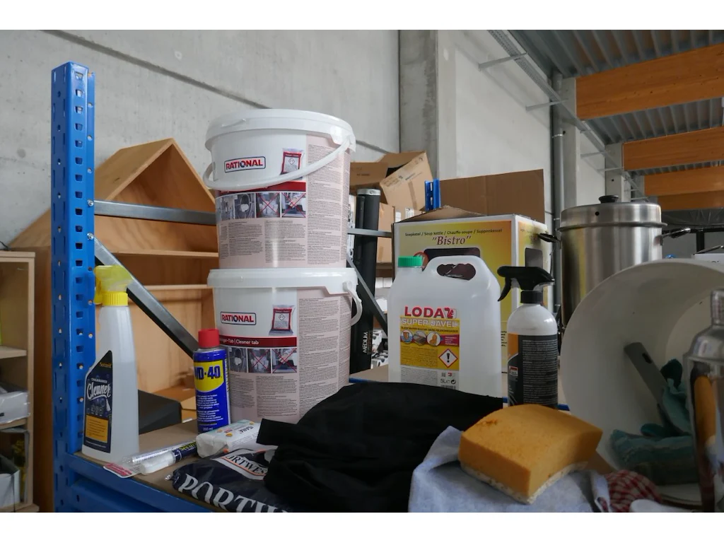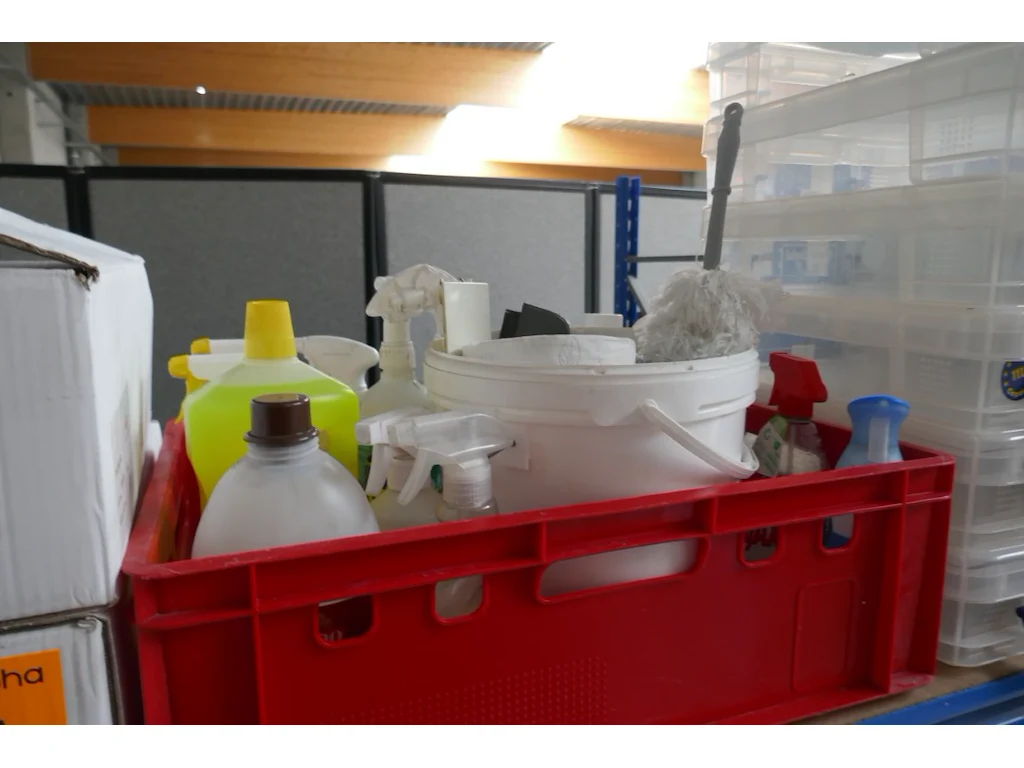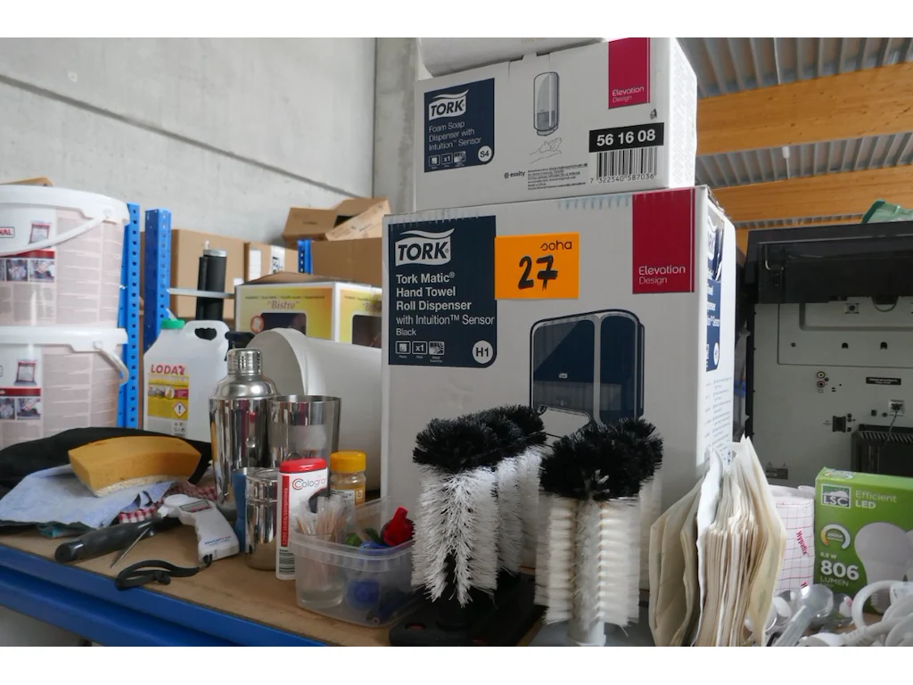 Reeks poetsprodukten - afvalzakken - handoekdispensers - zeepdispenser - elektrische verdeeldozen - beekwater - lampen - enz….