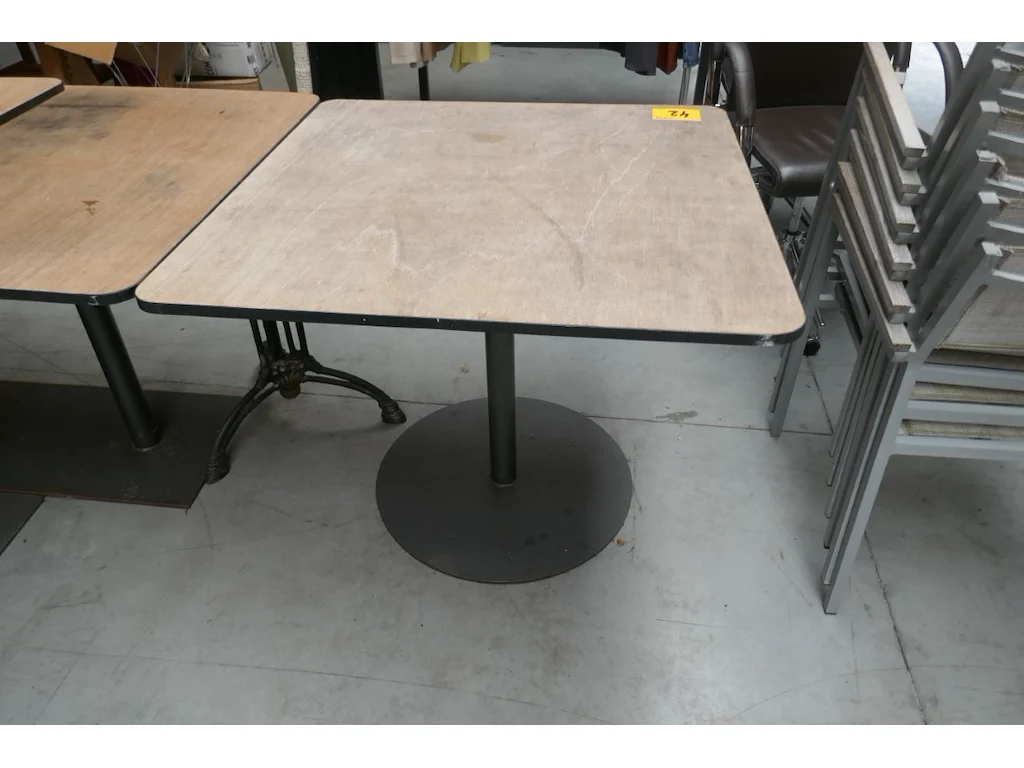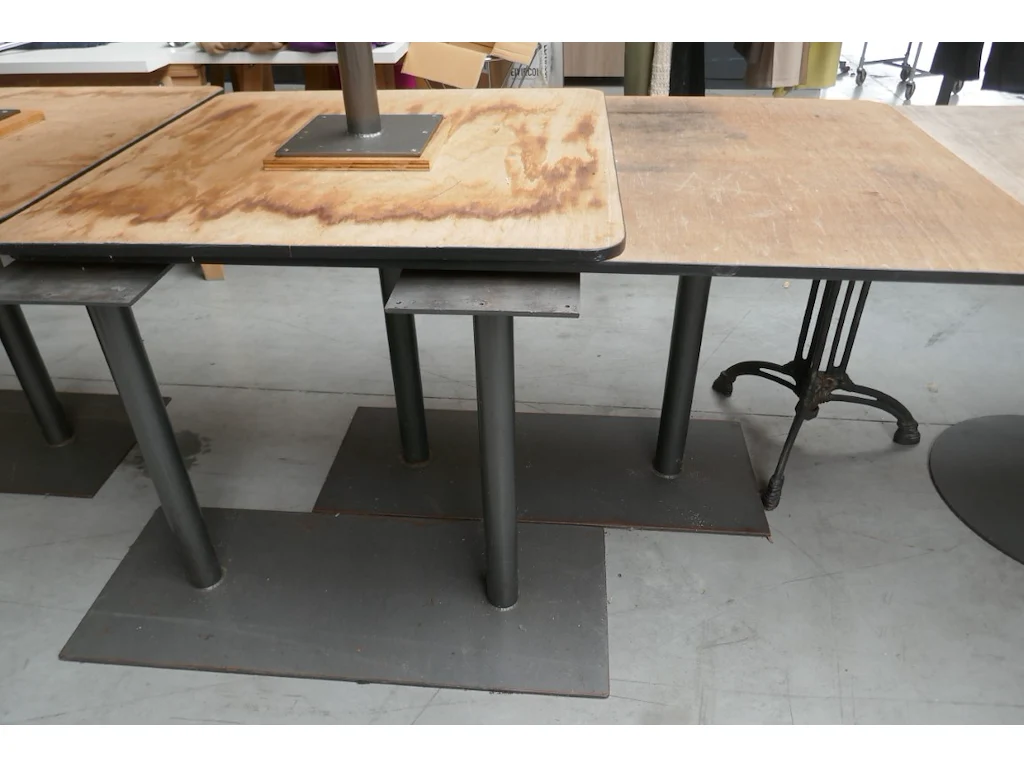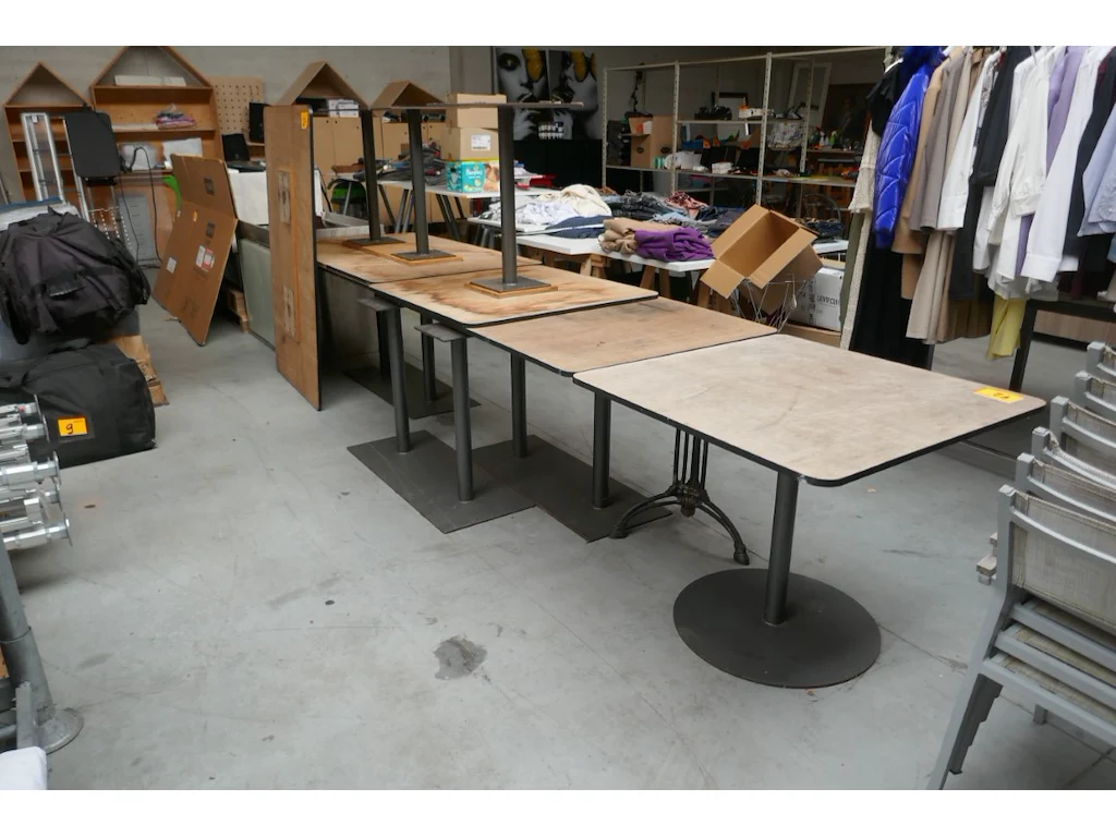 :<br /> 4 rechthoekige tafels : L151xB90 cm<br /> 2 vierkante tafels : 90x90 cm