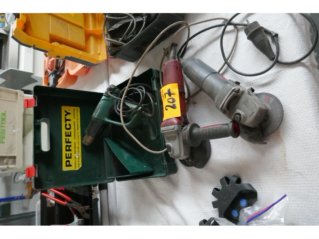 Elektrische haakse slijpers<br /> *merken : BOSCH / MILWAUKEE<br /> Elektrische heteluchtpistool met koffer<br /> *merk : BOSCH<br /> *model : phg 600-3