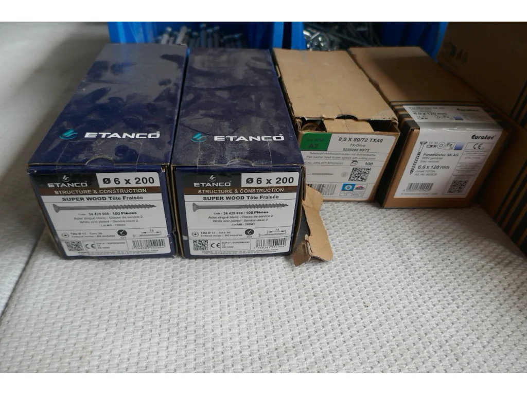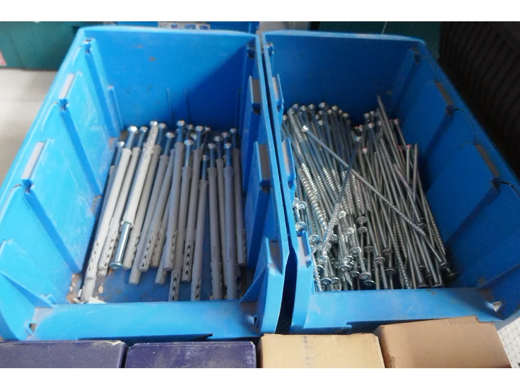 Allerhande bevestigingsmateriaal : slagpluggen - schroeven - pvc koppelstukken - enz…