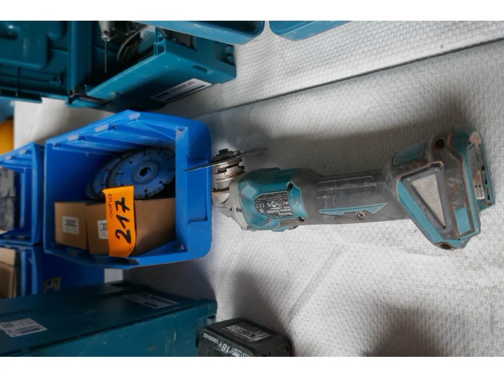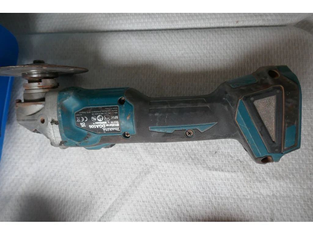 Accu slijper zonder batterij en lader<br /> *merk : MAKITA<br /> *model : dga506<br /> Plastieken rangeerbak met diverse slijpschijven