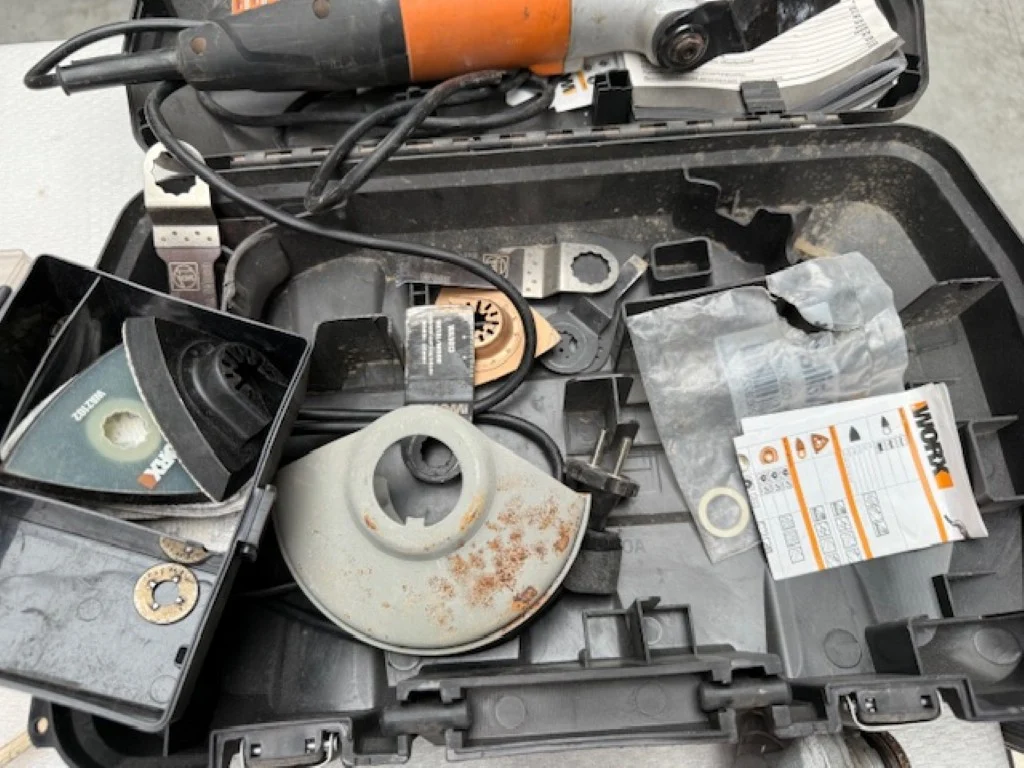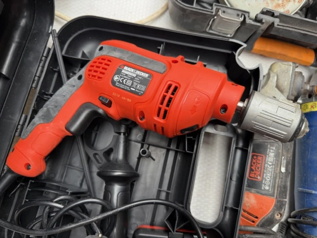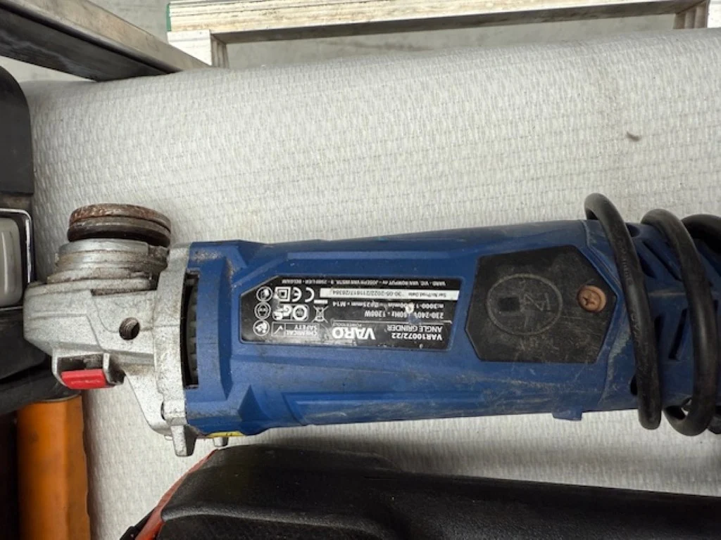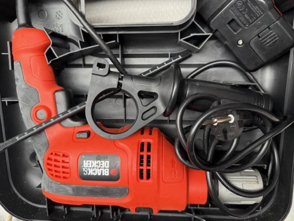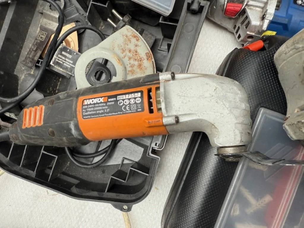 Zo goed als nieuwe el.boormachine, merk BLACK & DECKER + detector <br /> + 3 Elektrische slijpmolens<br /> *merken : Black & DECKER / VARO / WORKX<br /> *modellen : 1755 / var10072-22<br /> *koffer