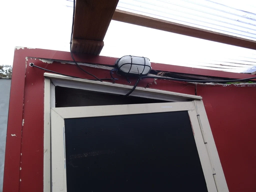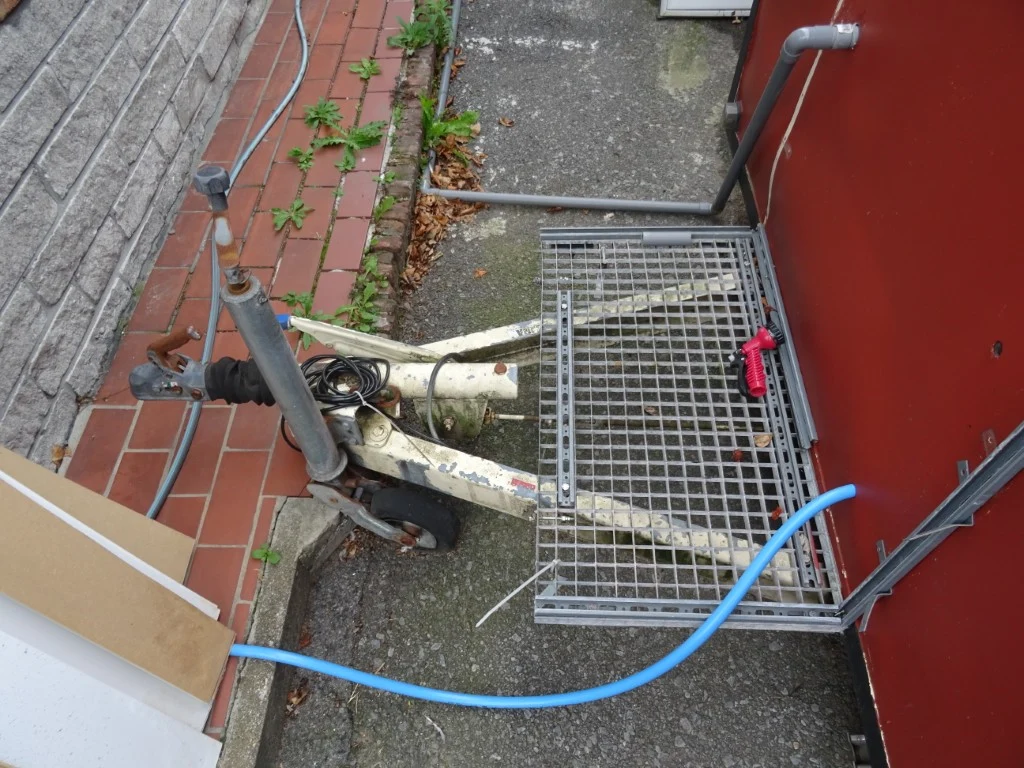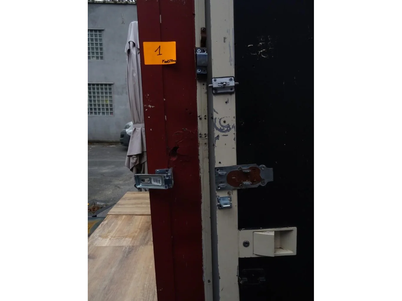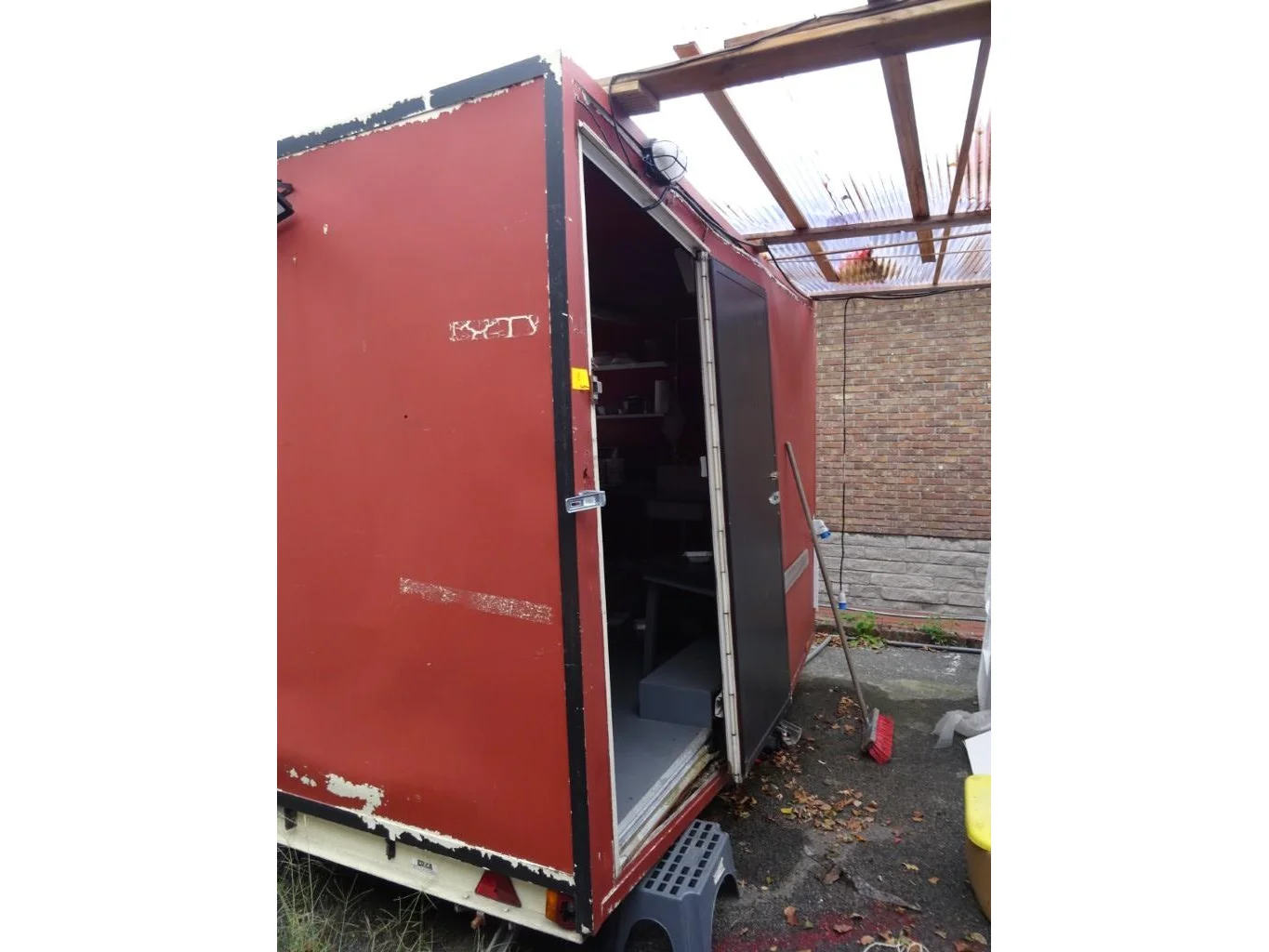 Type: E1/1305, 3010x1950x2500, samen met inhoud, na te zien (gebarsten zijwand/dak)