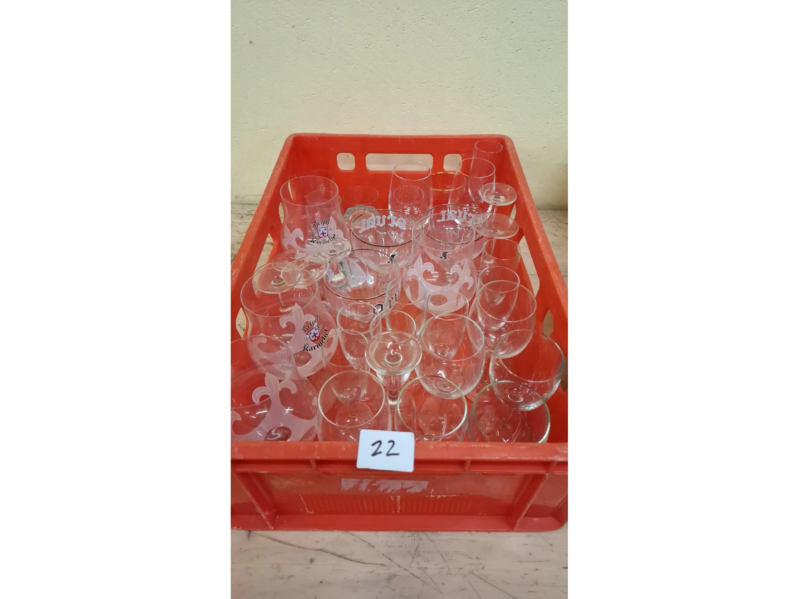 O.a. orval, karmeliet, wijnglazen, cava,…
