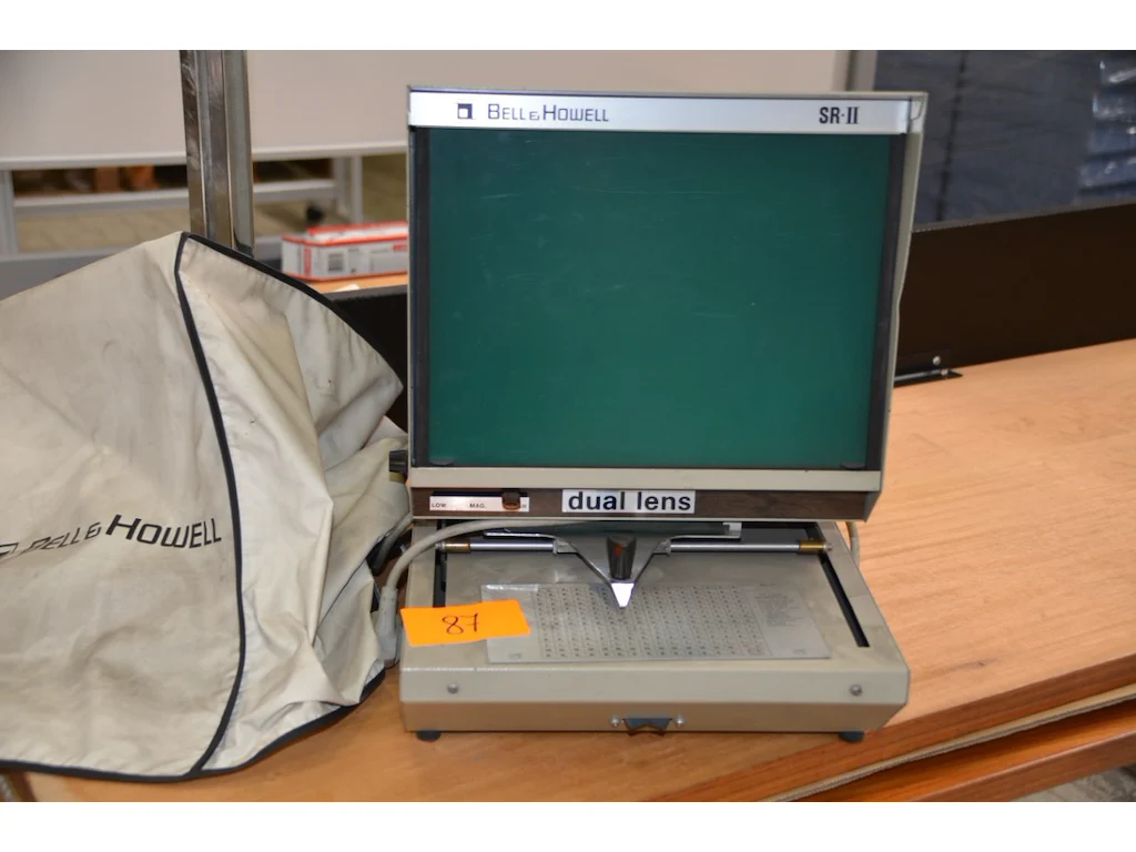IGI en microfiche lezer. Voor het projecteren en vergroten van afbeeldingen in microformaat. Incl. beschermhoes.