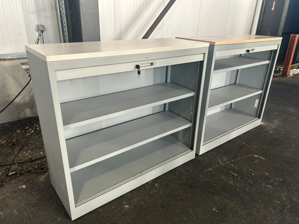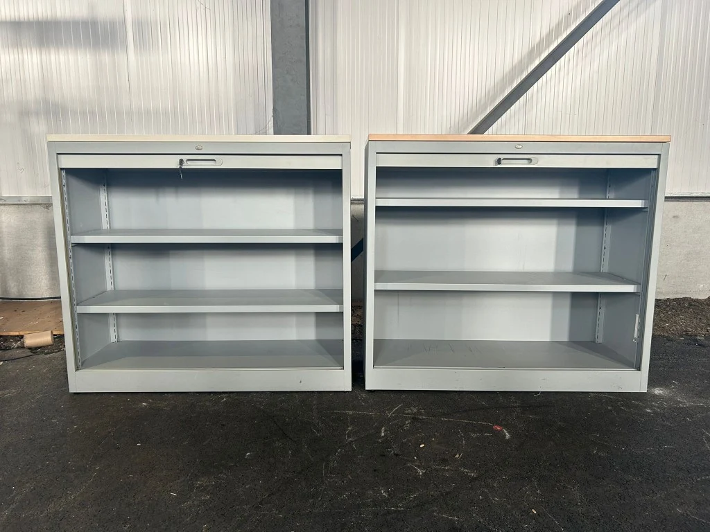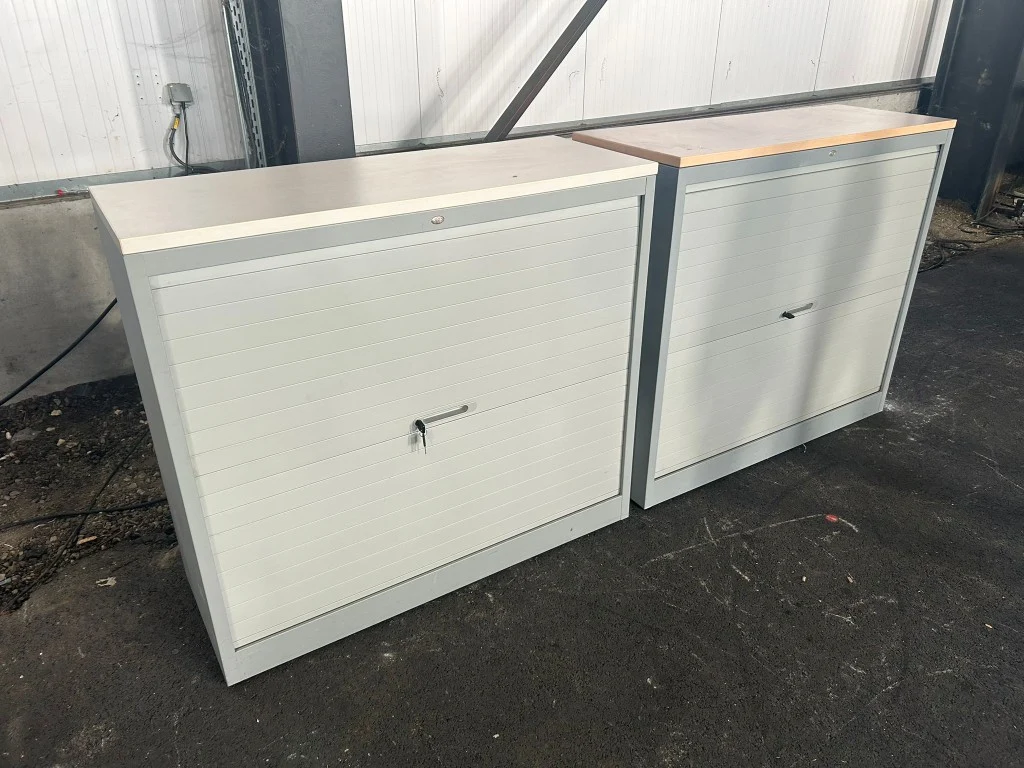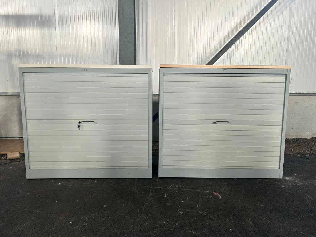 Set van 2x JEC Halfh Hor Roldeurkast H120xD46xB108 - Grijs Metaal, (V0052) met gebruikssporen, sleutel niet gegarandeerd