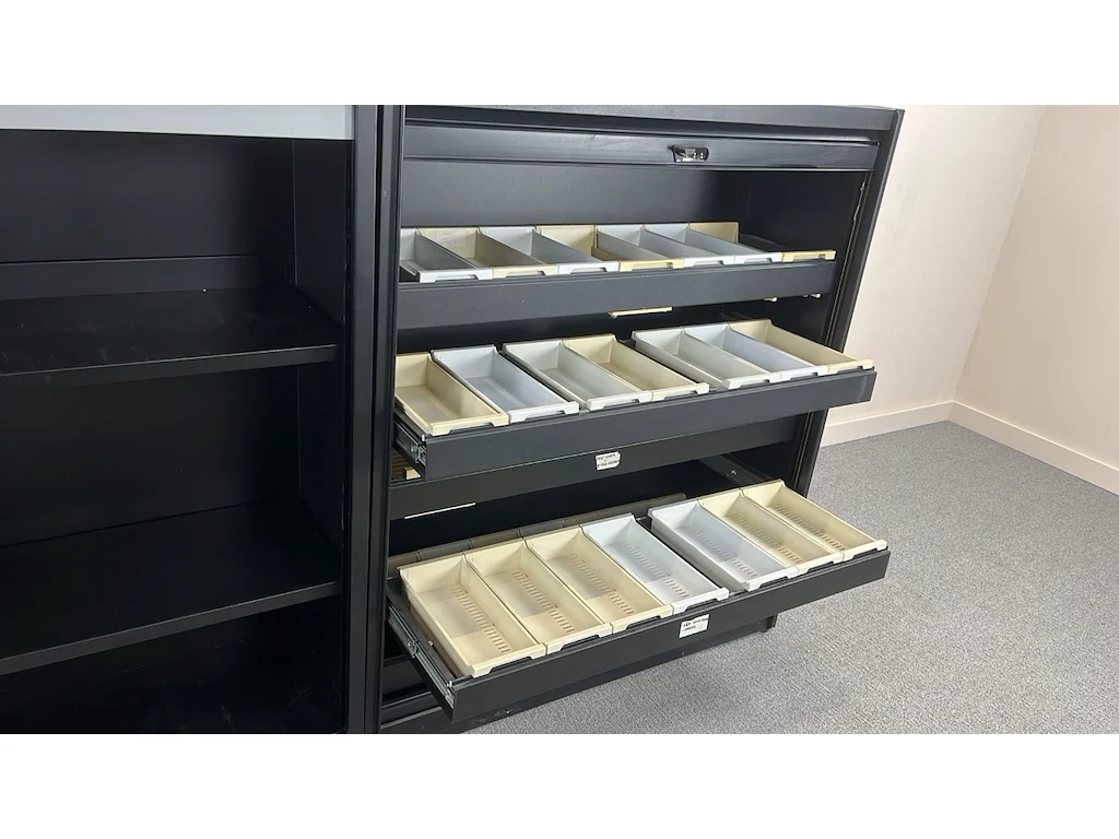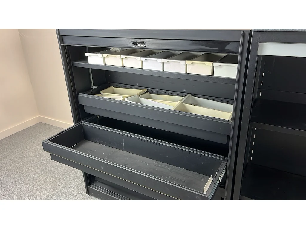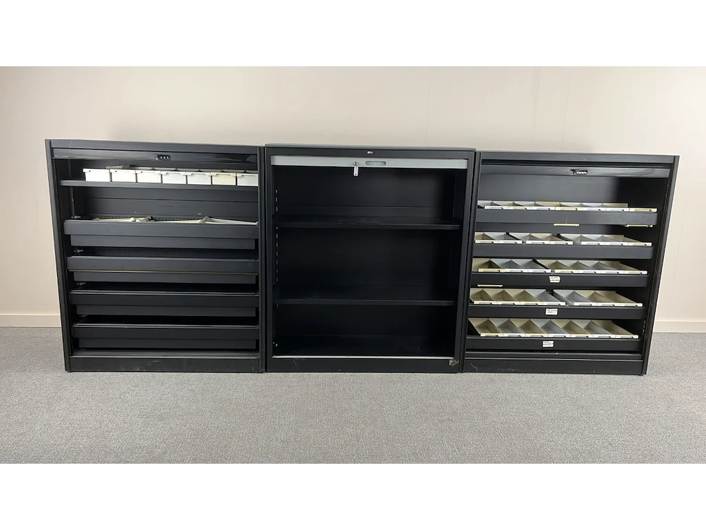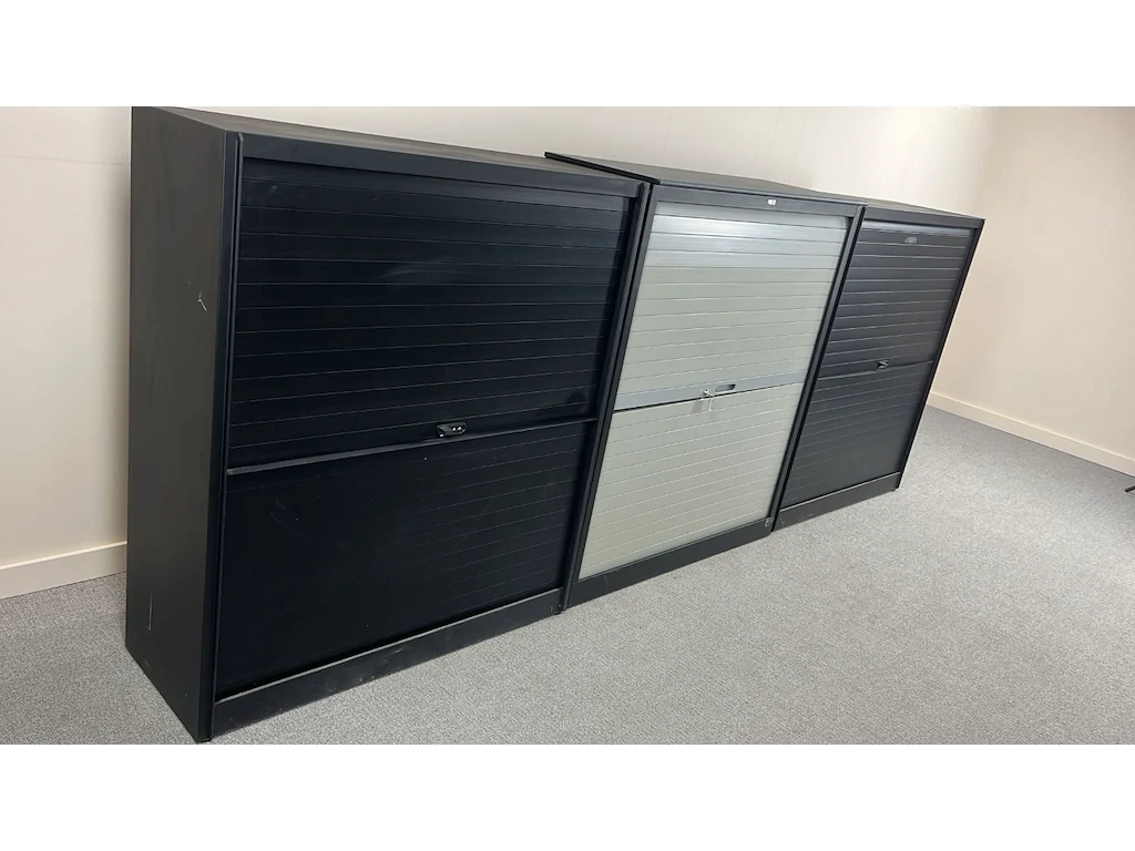 Set van 3x BULO Halfh Hor Roldeurkast (Gemengde set) H140xB120xD47 - Zwart/Grijs, (V0084), met gebruikssporen