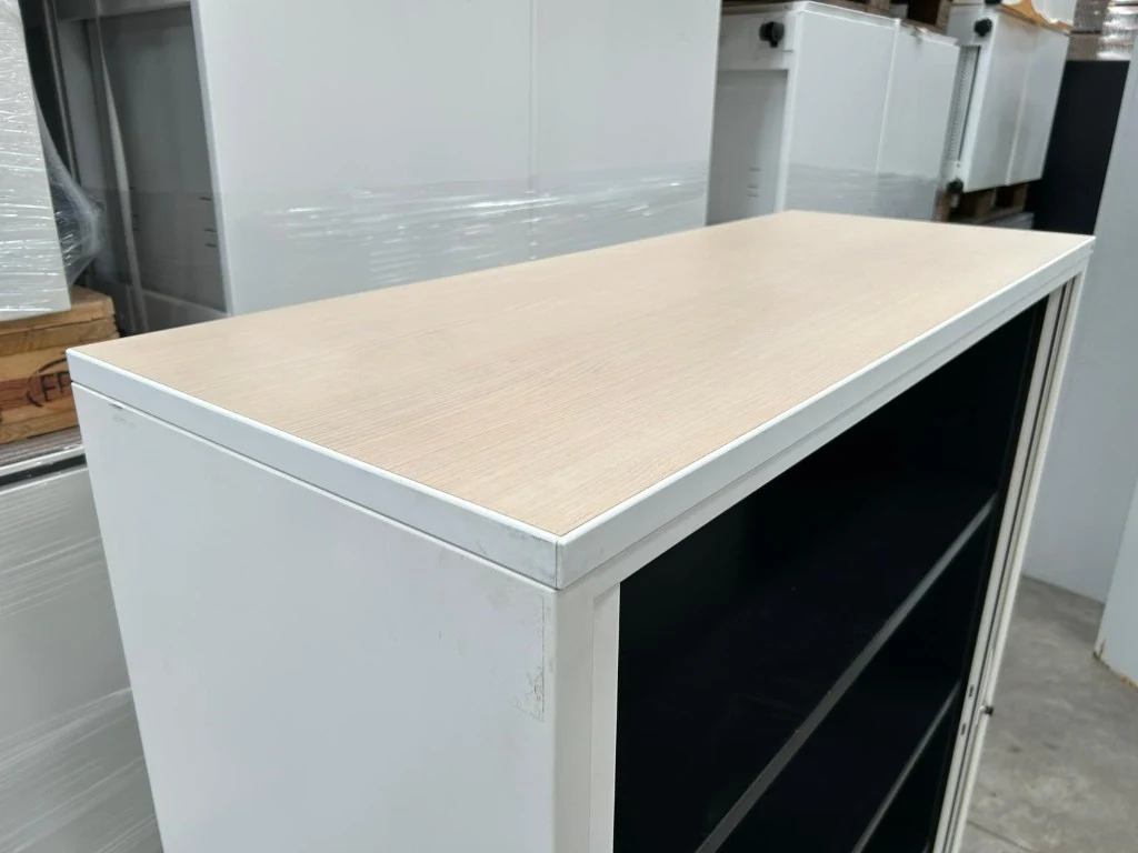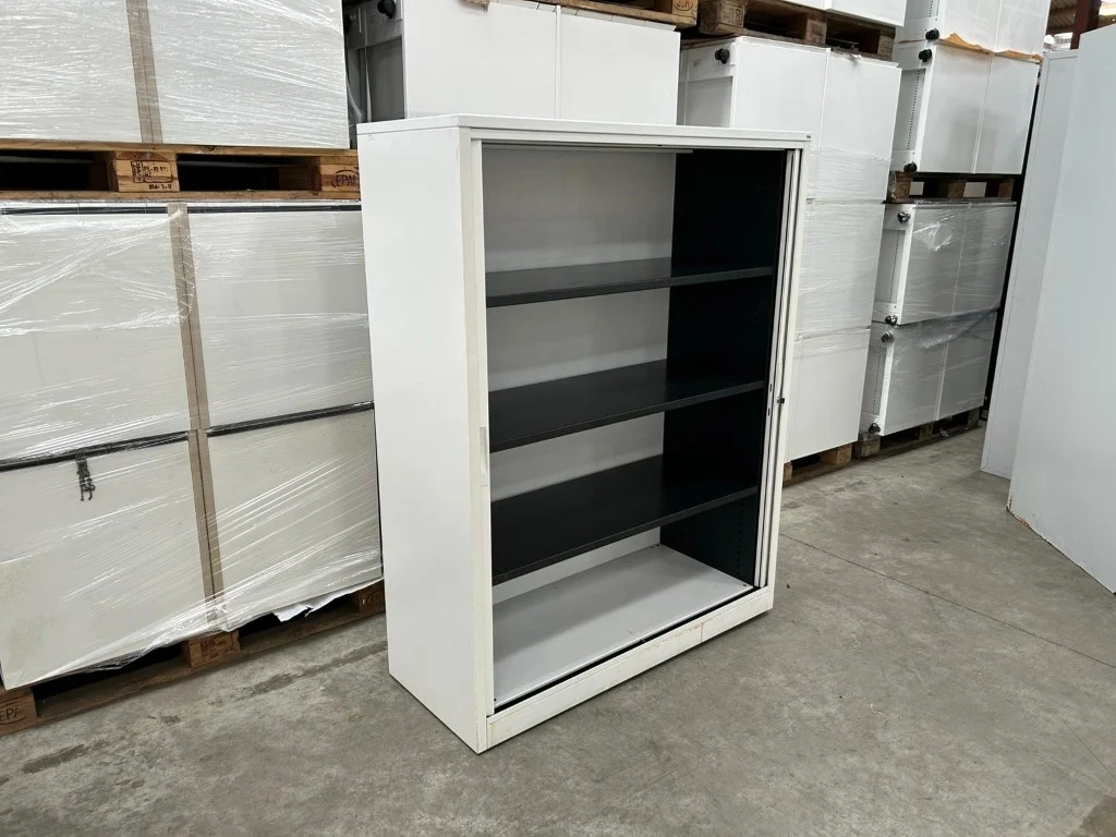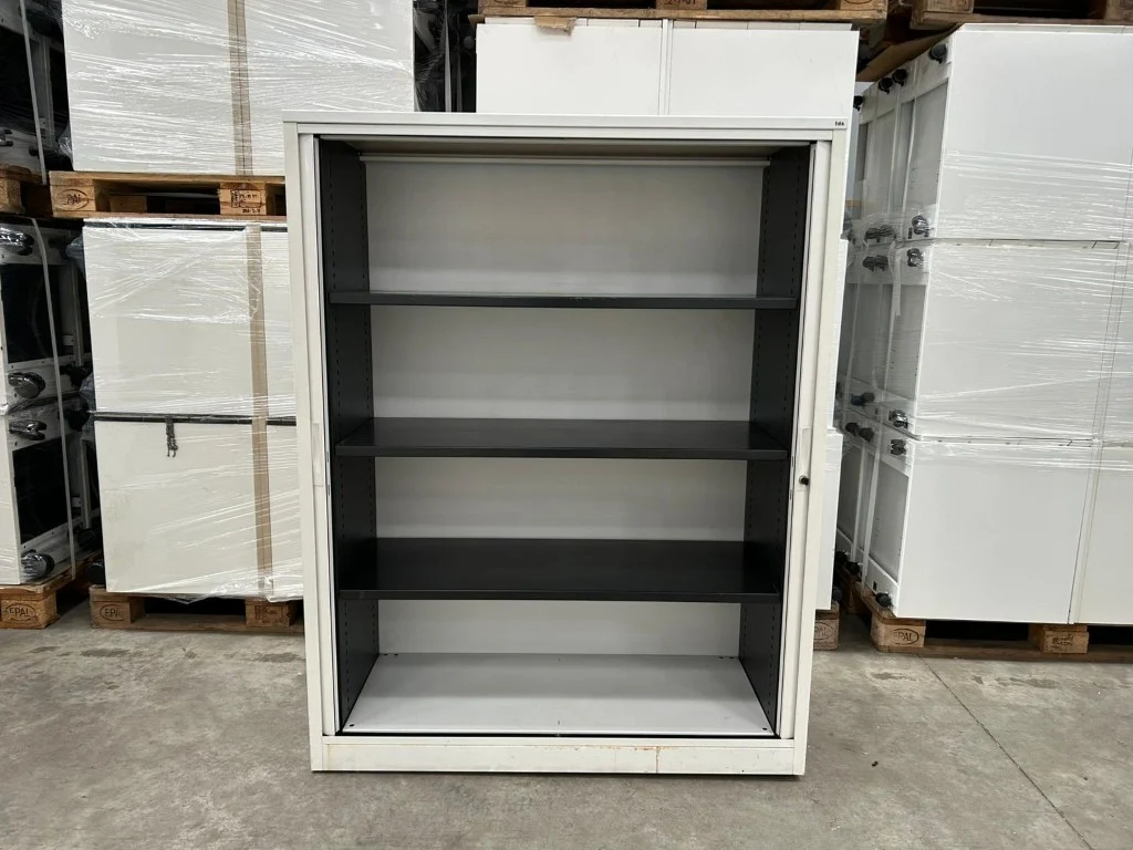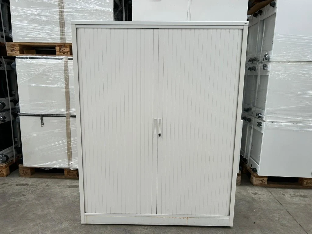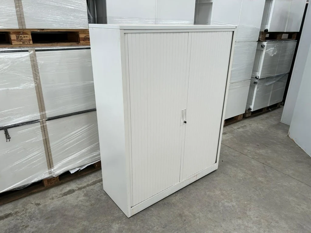 1x TDS Halfh Vert Roldeurkast H153xB153xD47 - Wit/Metaal, (V0407), met enkele gebruikssporen