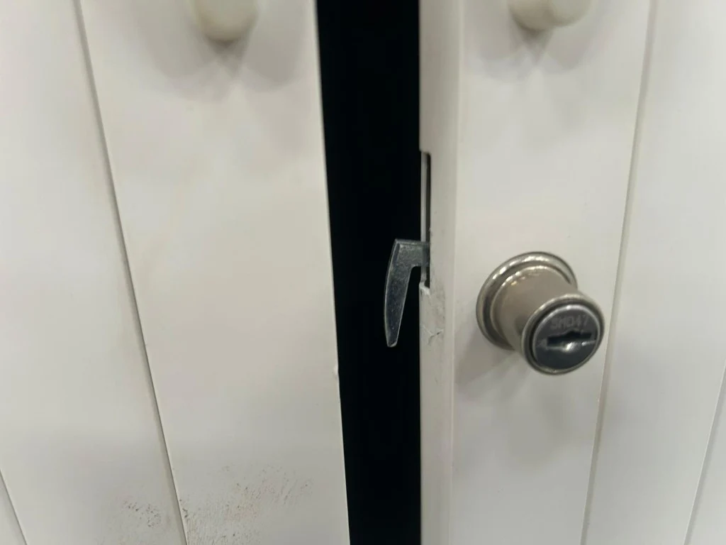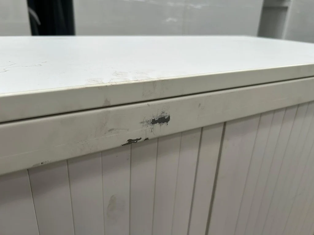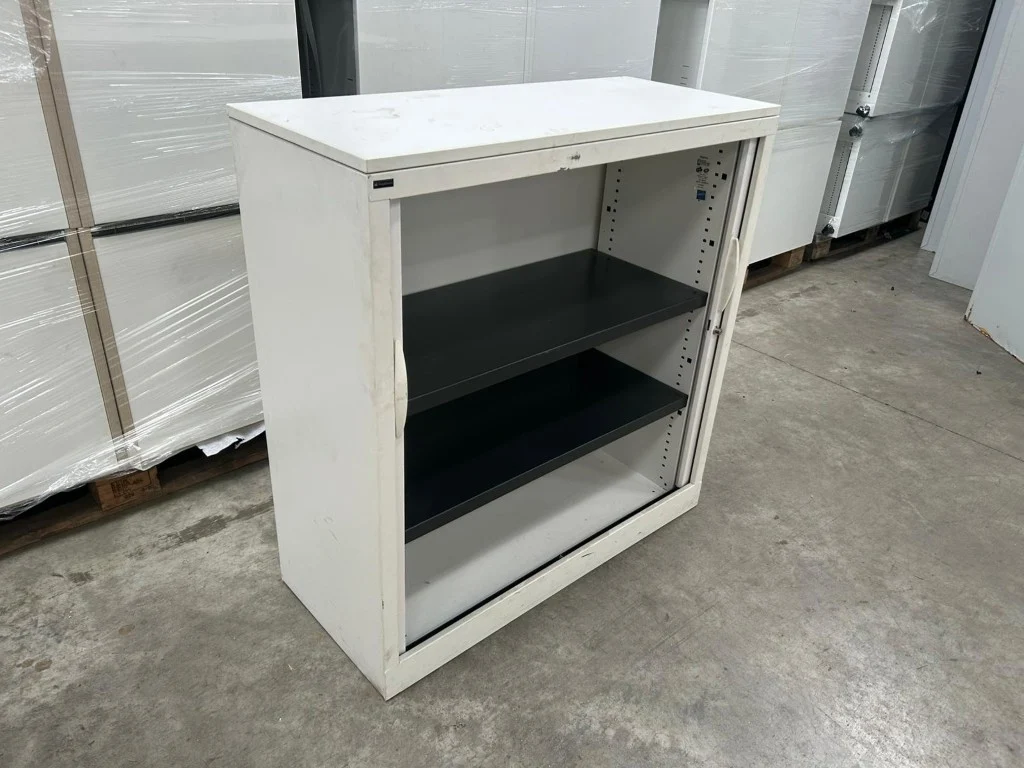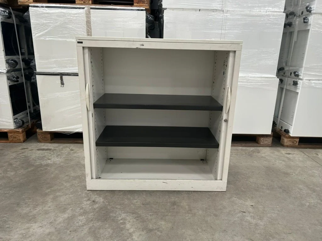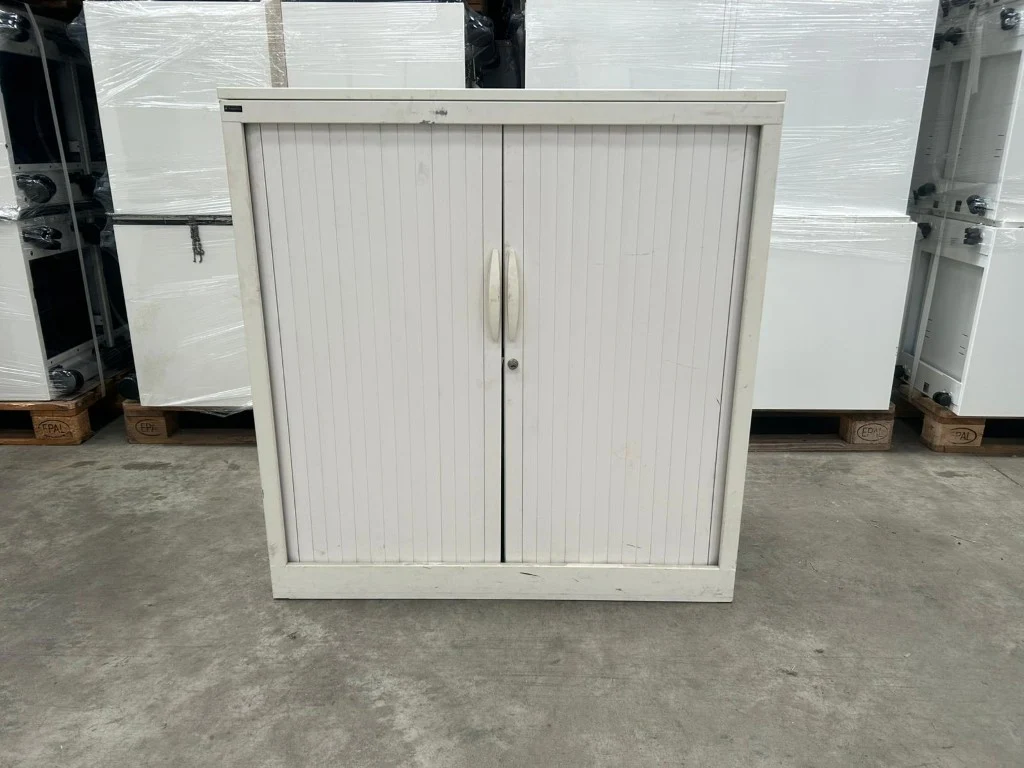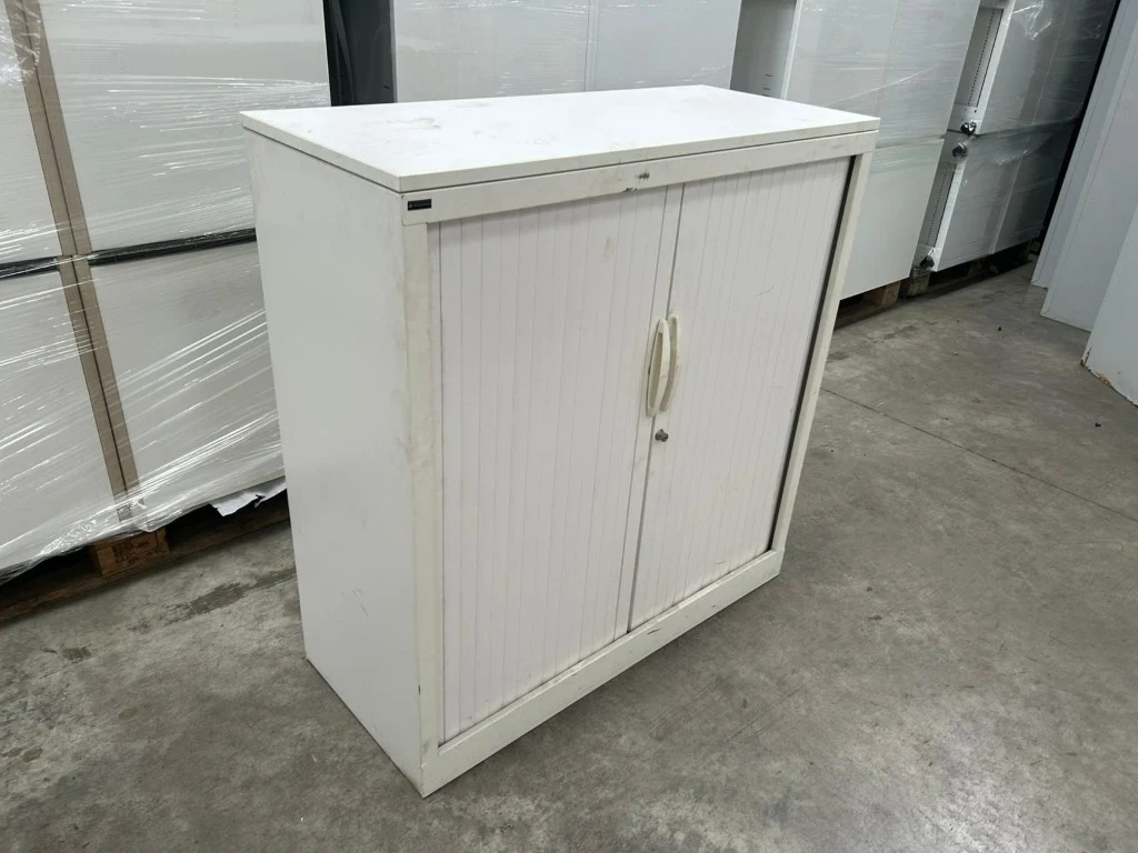 1x MAJENCIA Halfh Vert Roldeurkast H105xB100xD43 - Wit/Metaal, Geen sleutel (V0411), met enkele gebruikssporen