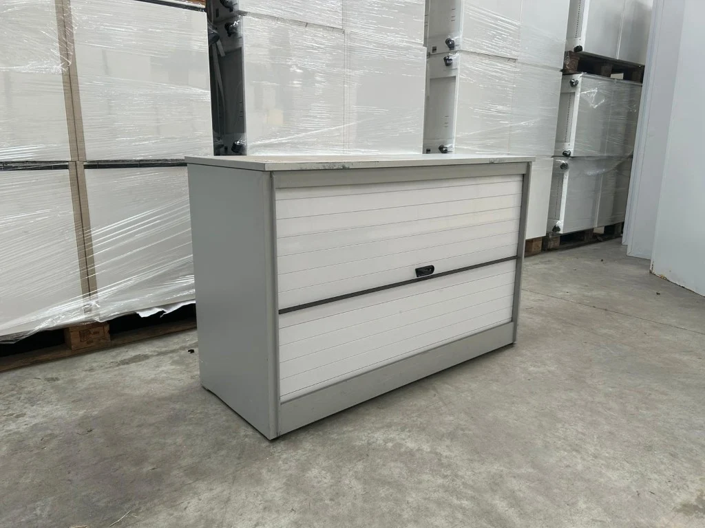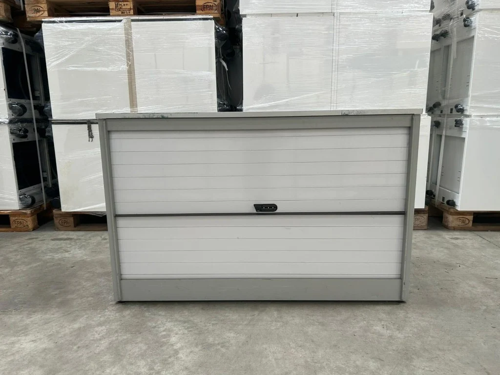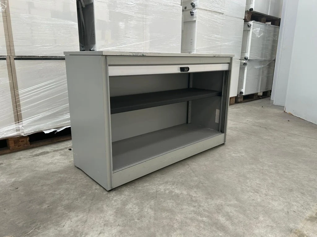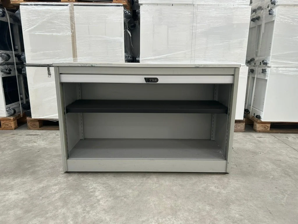 1x BULO Lage Hor Roldeurkast H78xB120xD48 - Grijs/Wit/Metaal, (V0420), met gebruikssporen